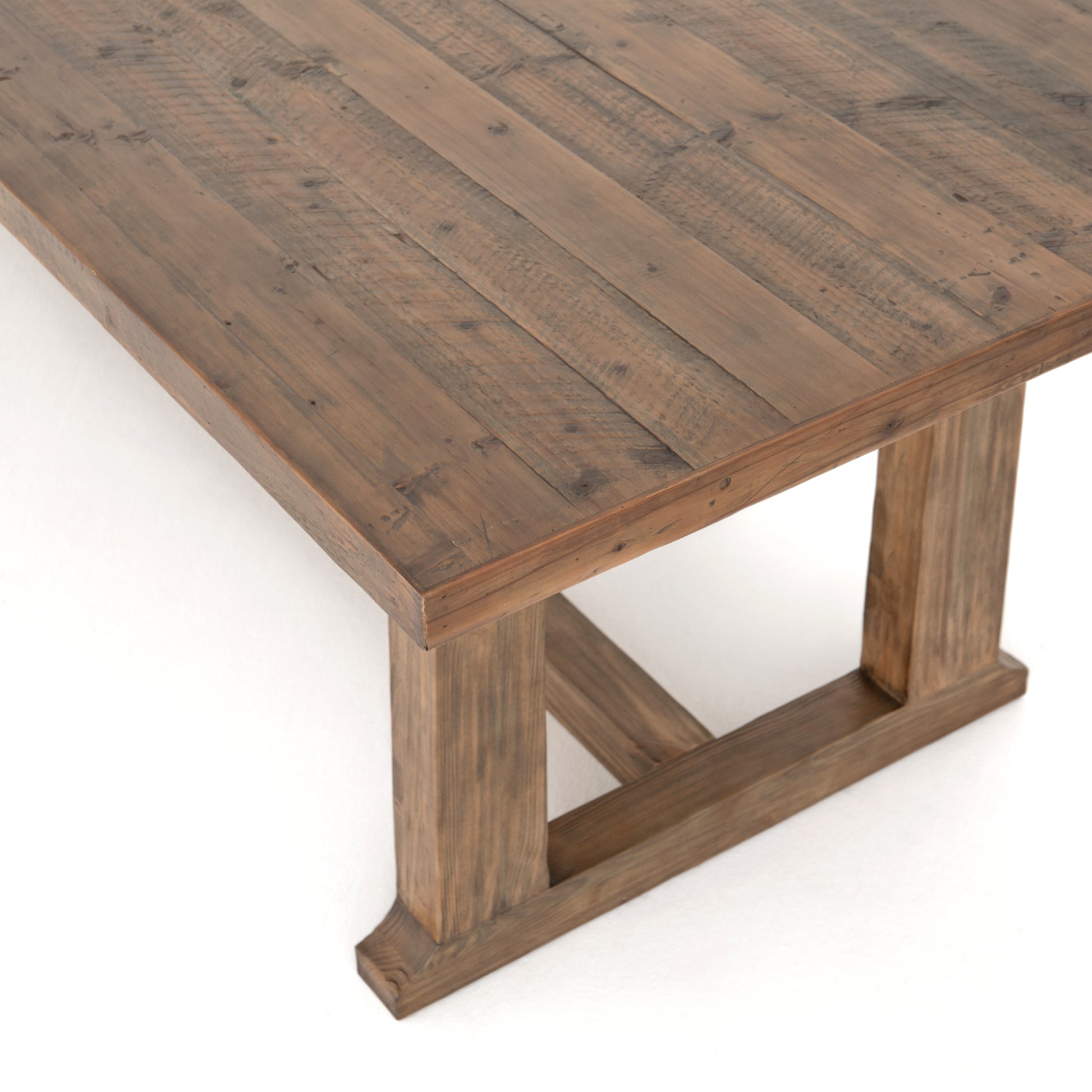 Bring a traditional sense to the table. Finished in a warm honey hue, a trestle-style base of solid pine supports a rectangular top of pine, waxed and bleached for a rustic look with natural depth. Mix in seating or pair with matching bench.
