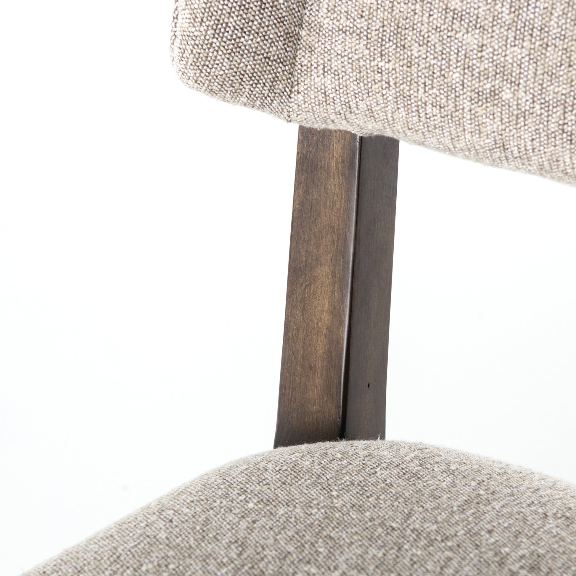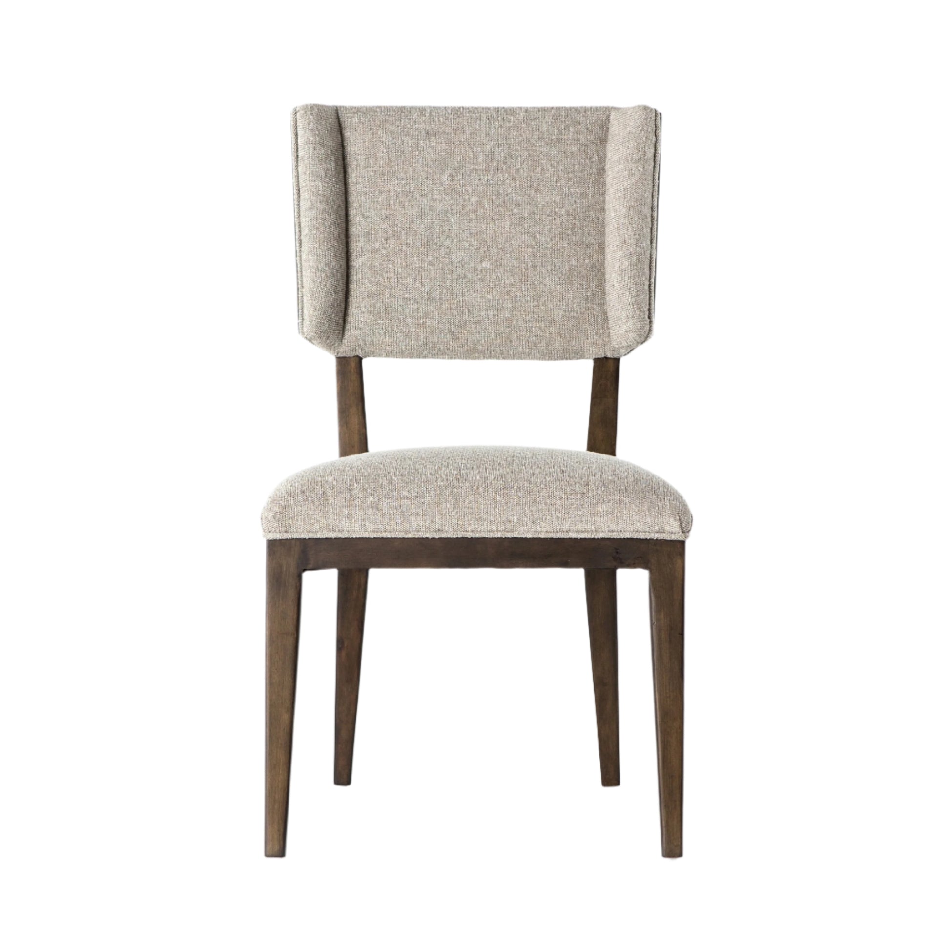 Bring the sensibility of a wing chair to the dining table. Angled wing, splayed stance, and exposed birch frame with sleekly upholstered seating.