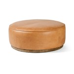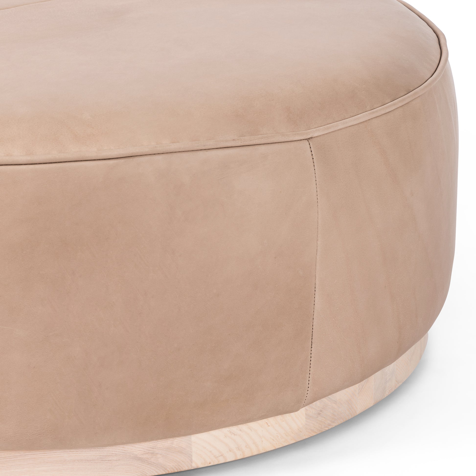 Upholstered in light top-grain leather and paired with a solid ash base, this wide, round ottoman can be placed just about anywhere – bringing with it a retro vibe. Style with a tray as a design-forward coffee table.
