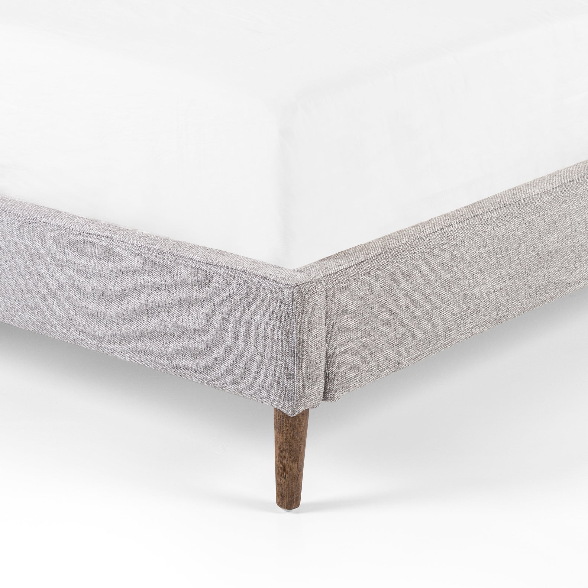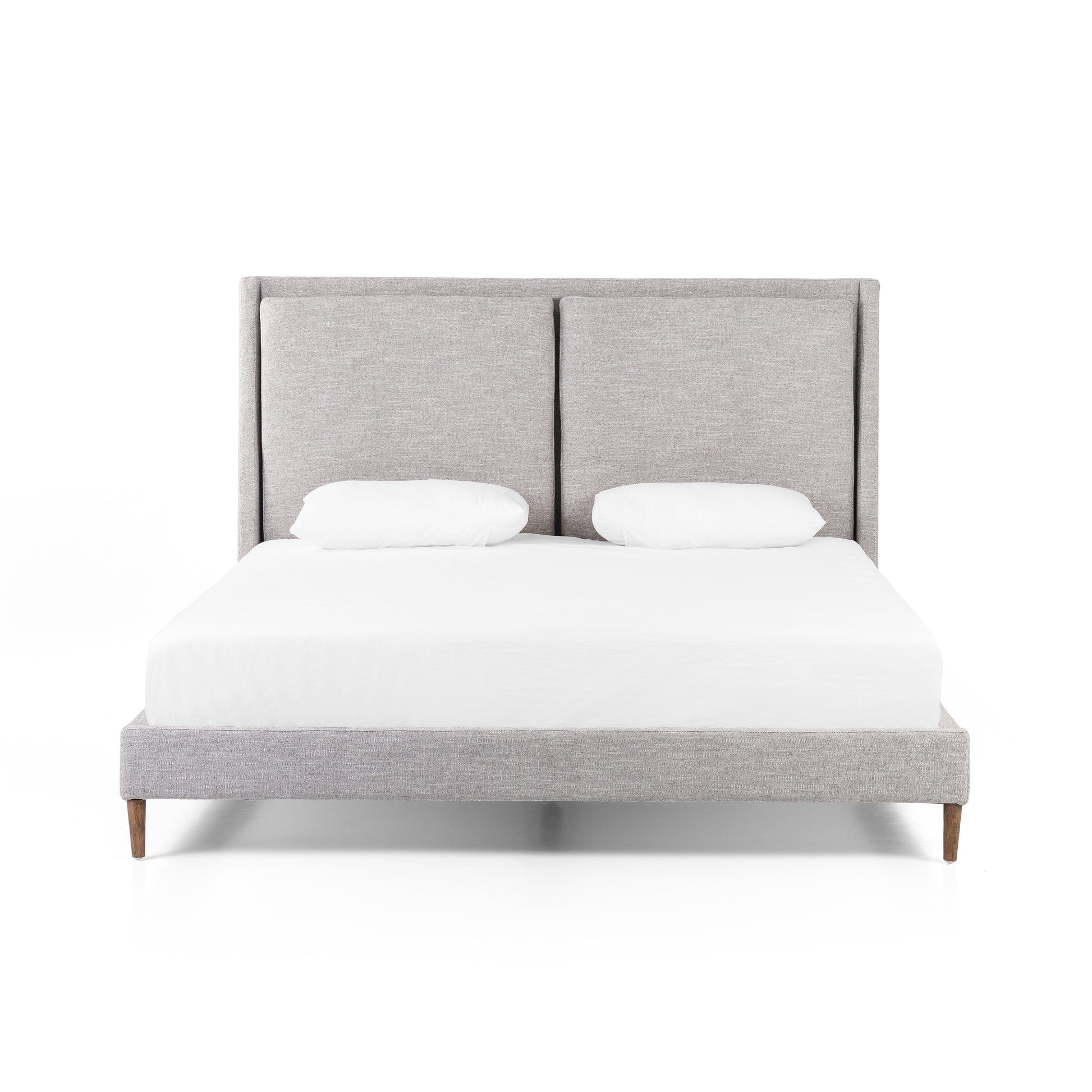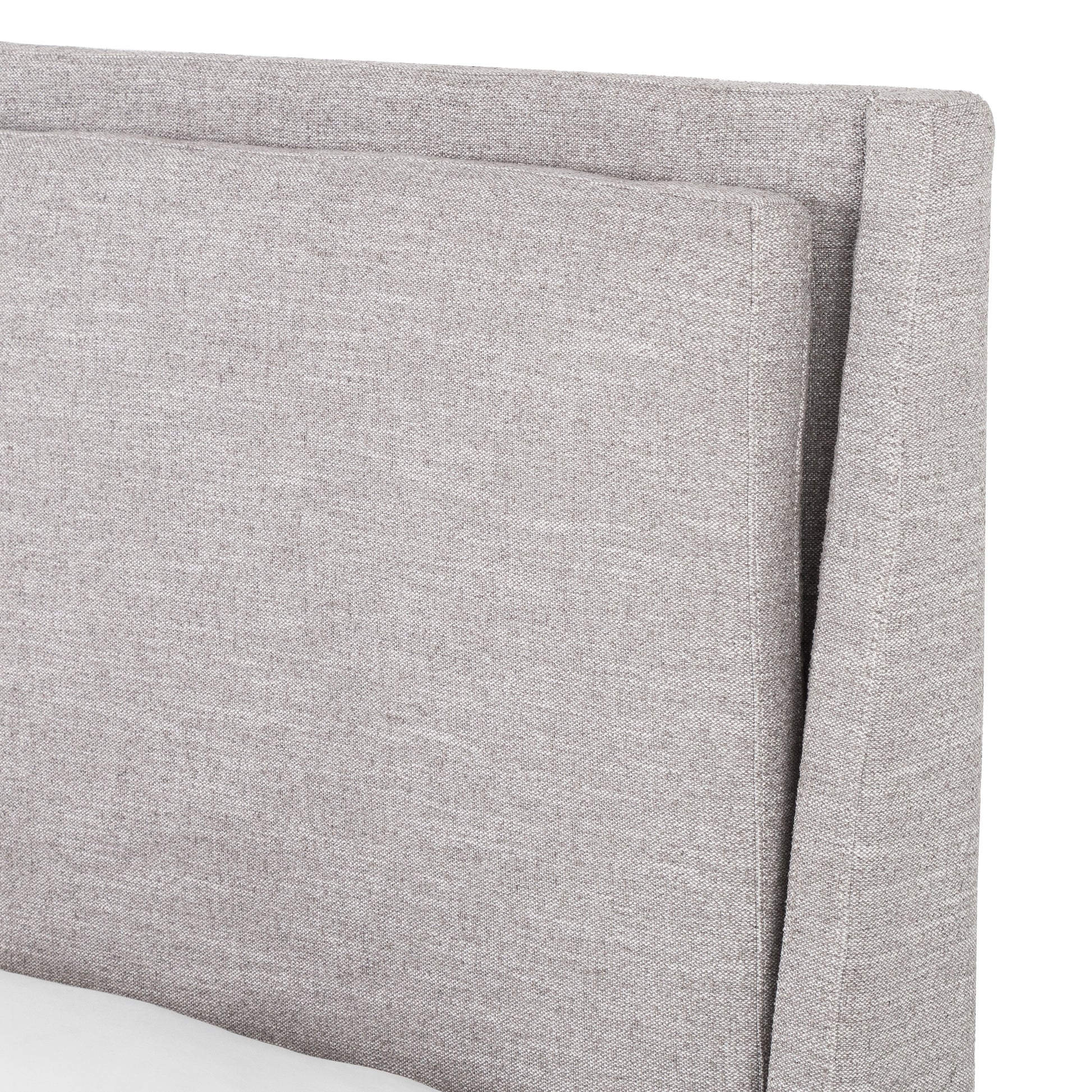 Light, livable luxury. Upholstered in a grey synthetic-blend, a tapered headboard features fixed overscale pillows, for a calming look with great depth. Wire-brushed parawood legs lend a warm, natural finishing touch. Performance fabrics are specially created to withstand spills, stains, high traffic and wear, ensuring long-term comfort and unmatched durability. This bed is not compatible with an adjustable mattress.