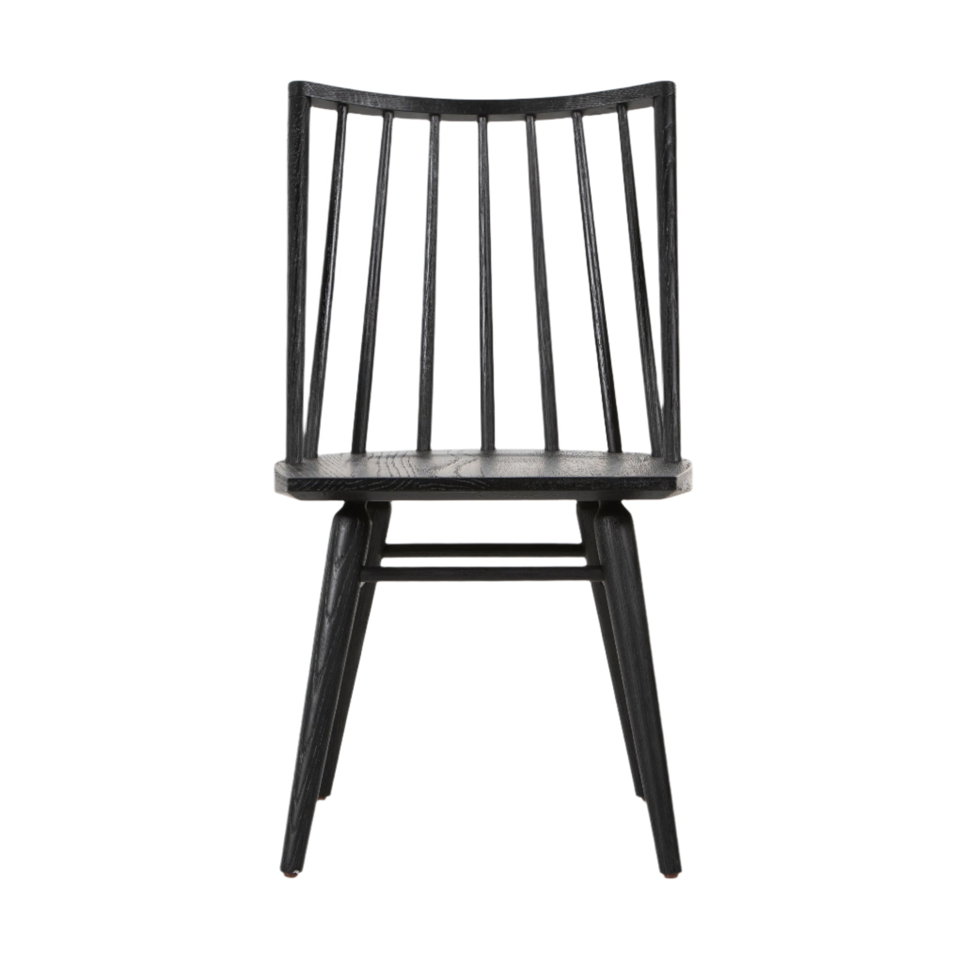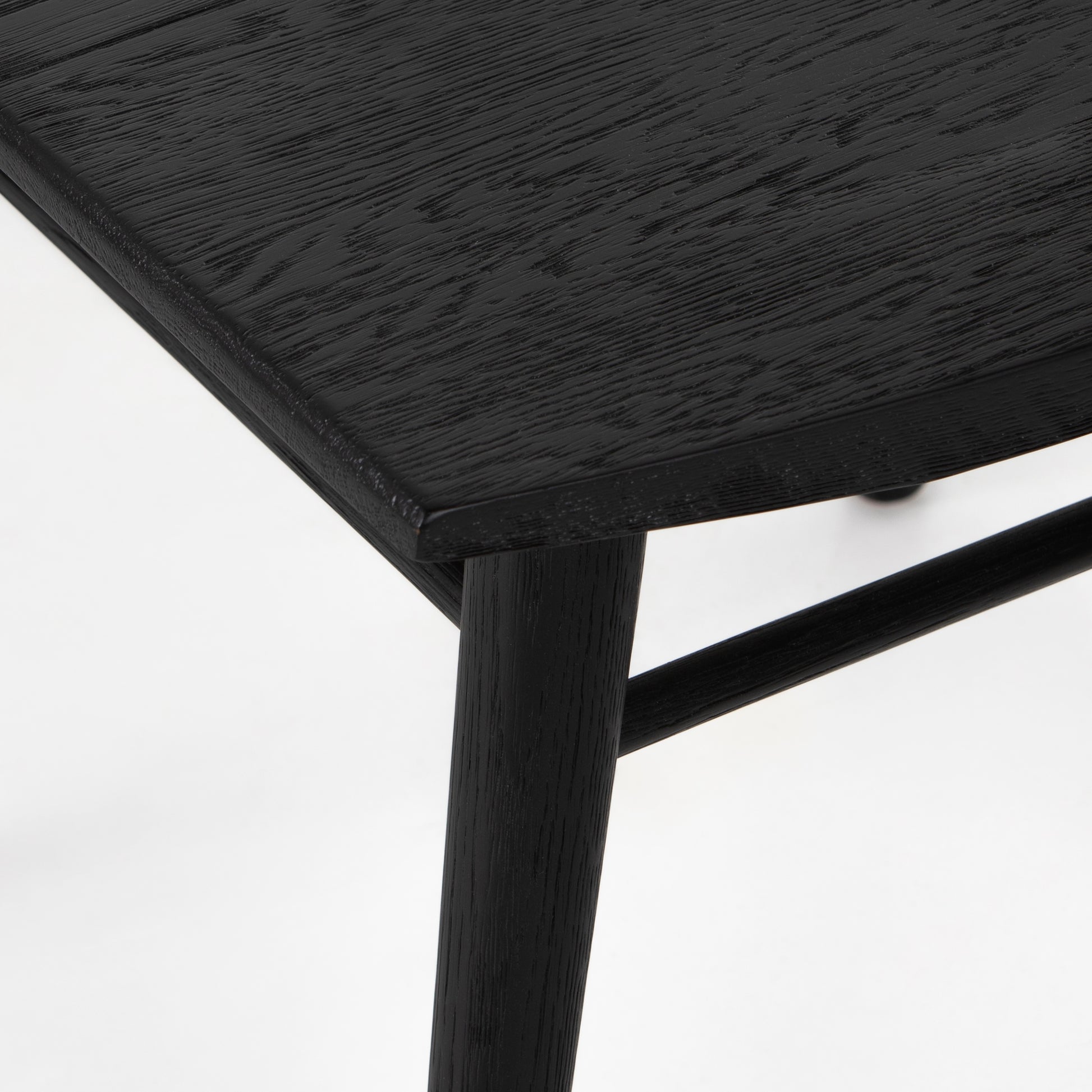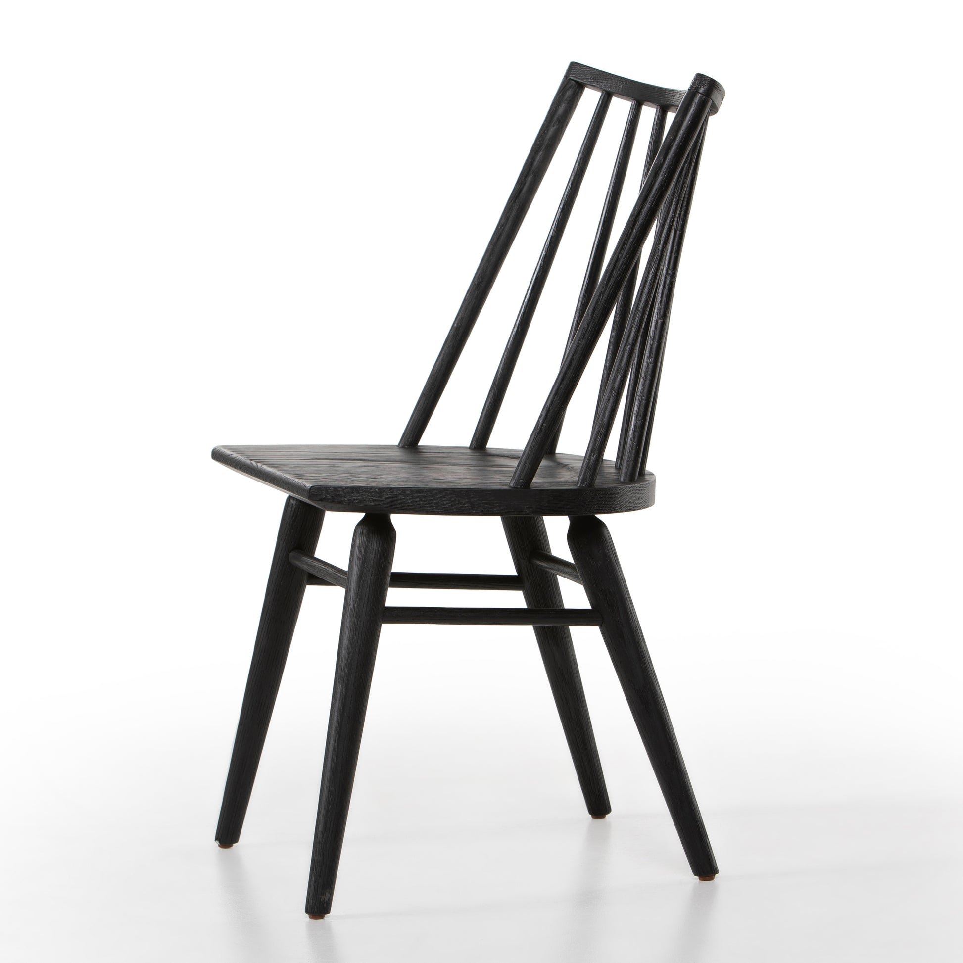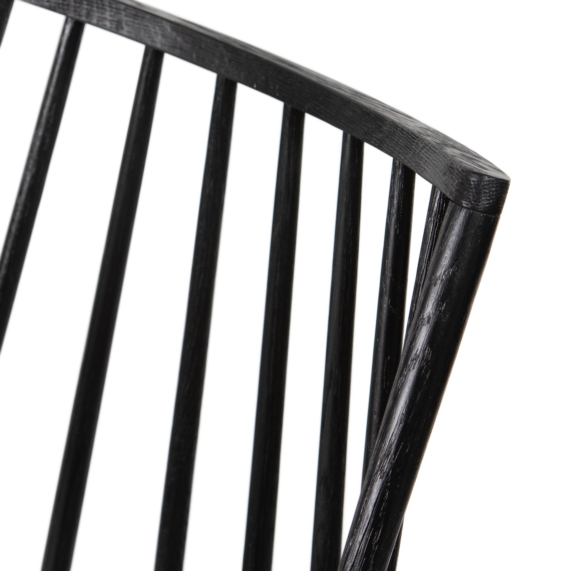 Try a cleaner, more modern take on the traditional Windsor. This tall beauty is wire-brushed to bring out the cathedral grain in the oak, and stained deep black for lovely contrast with more industrial decor.