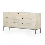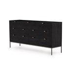 Inspired by clean mid-century design, a stylish dresser of auburn poplar offers plenty of bedroom storage space thanks to seven spacious drawers. Metal-secured leather pulls add a textural element of surprise.