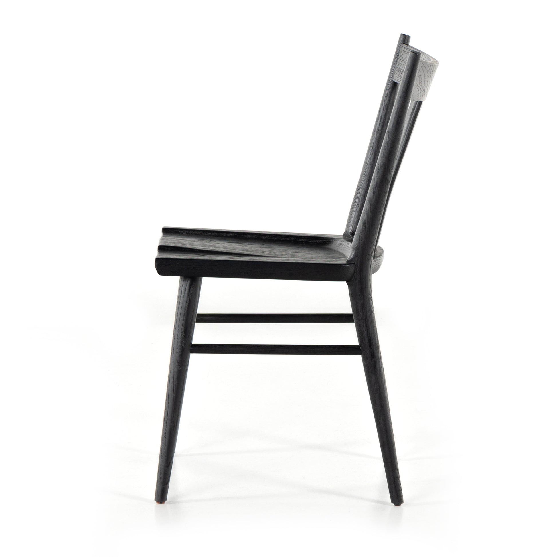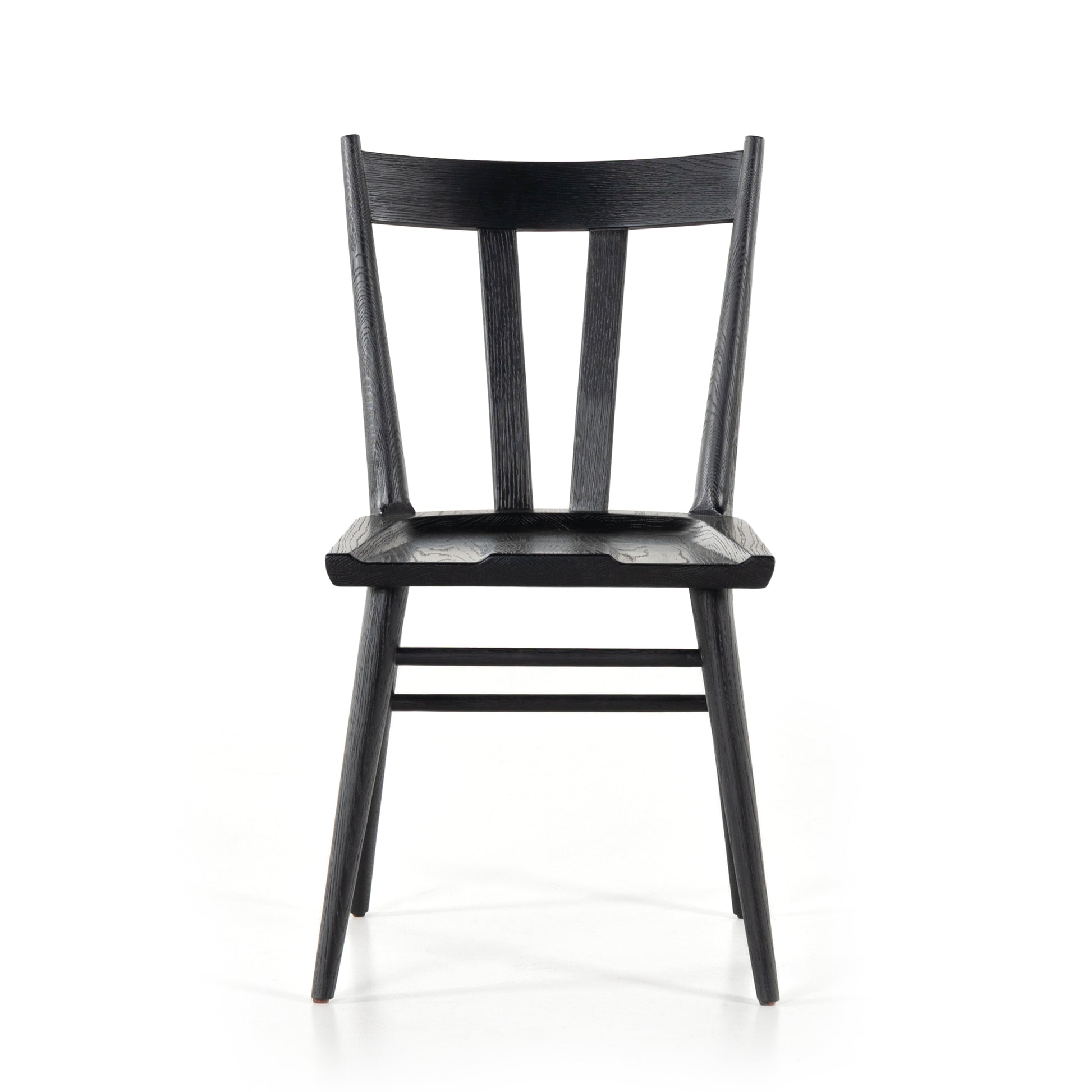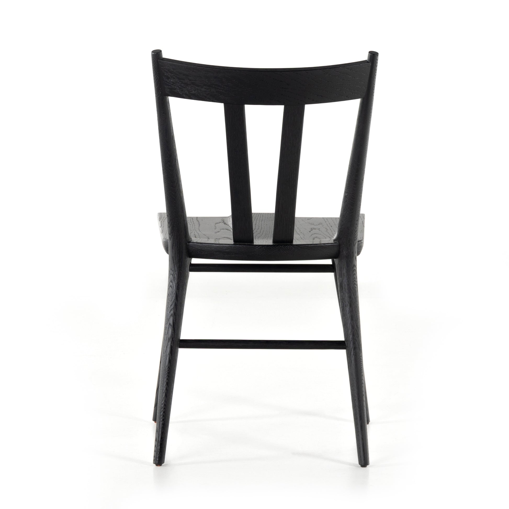 Finished in a beautifully classic black, an oak dining chair features a yoke-like back and widened supports, placing a fresh twist on the traditional Windsor.
