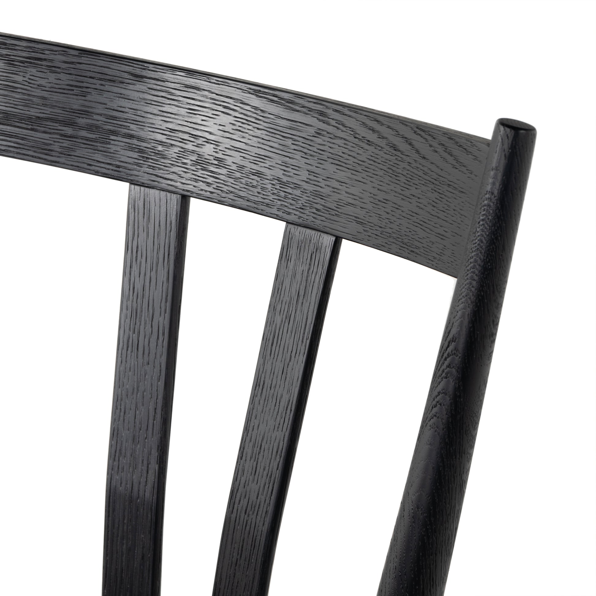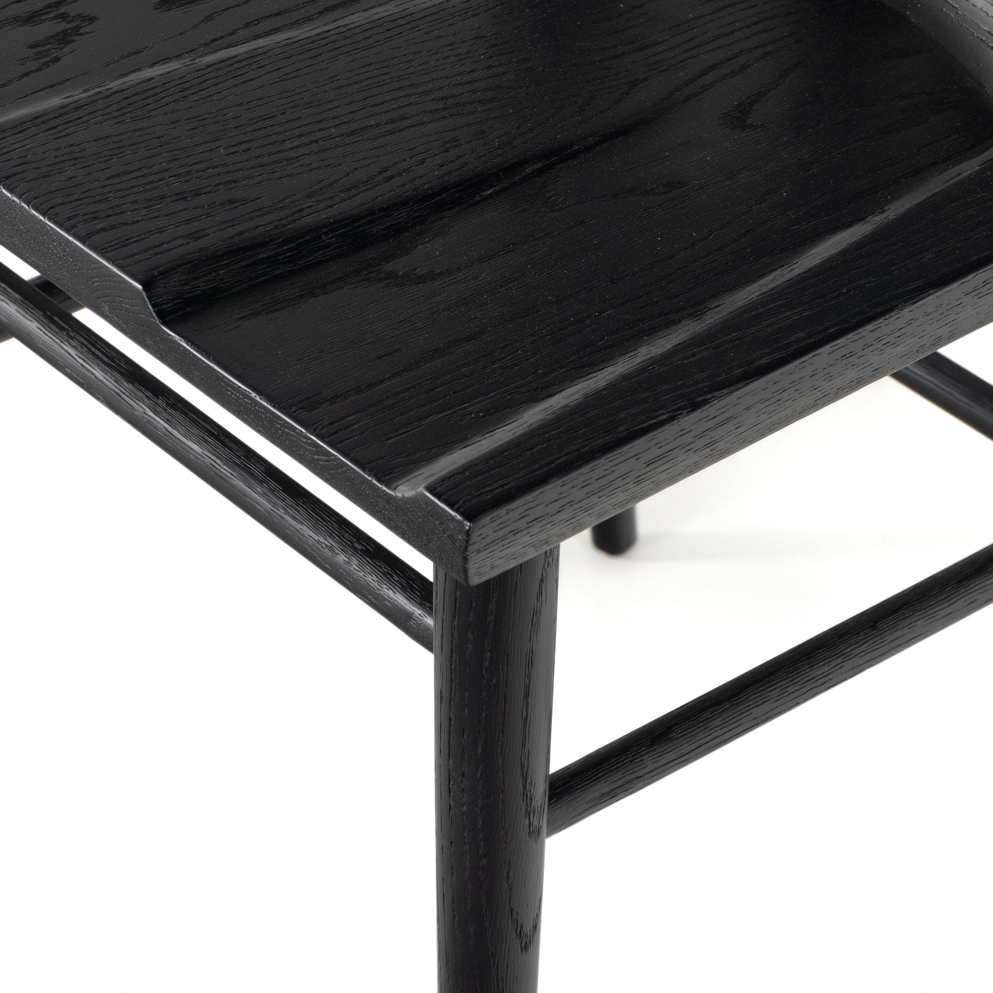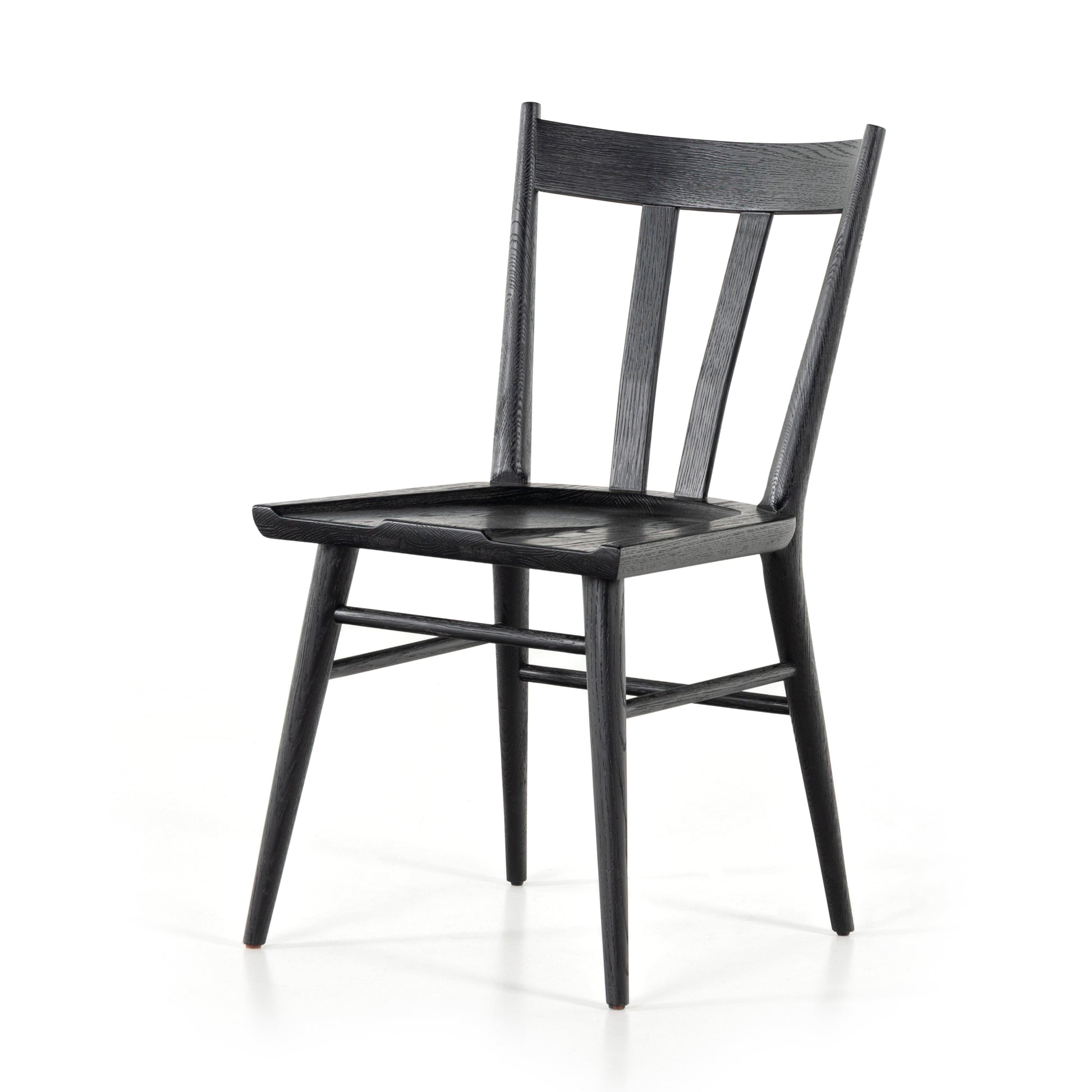 Finished in a beautifully classic black, an oak dining chair features a yoke-like back and widened supports, placing a fresh twist on the traditional Windsor.