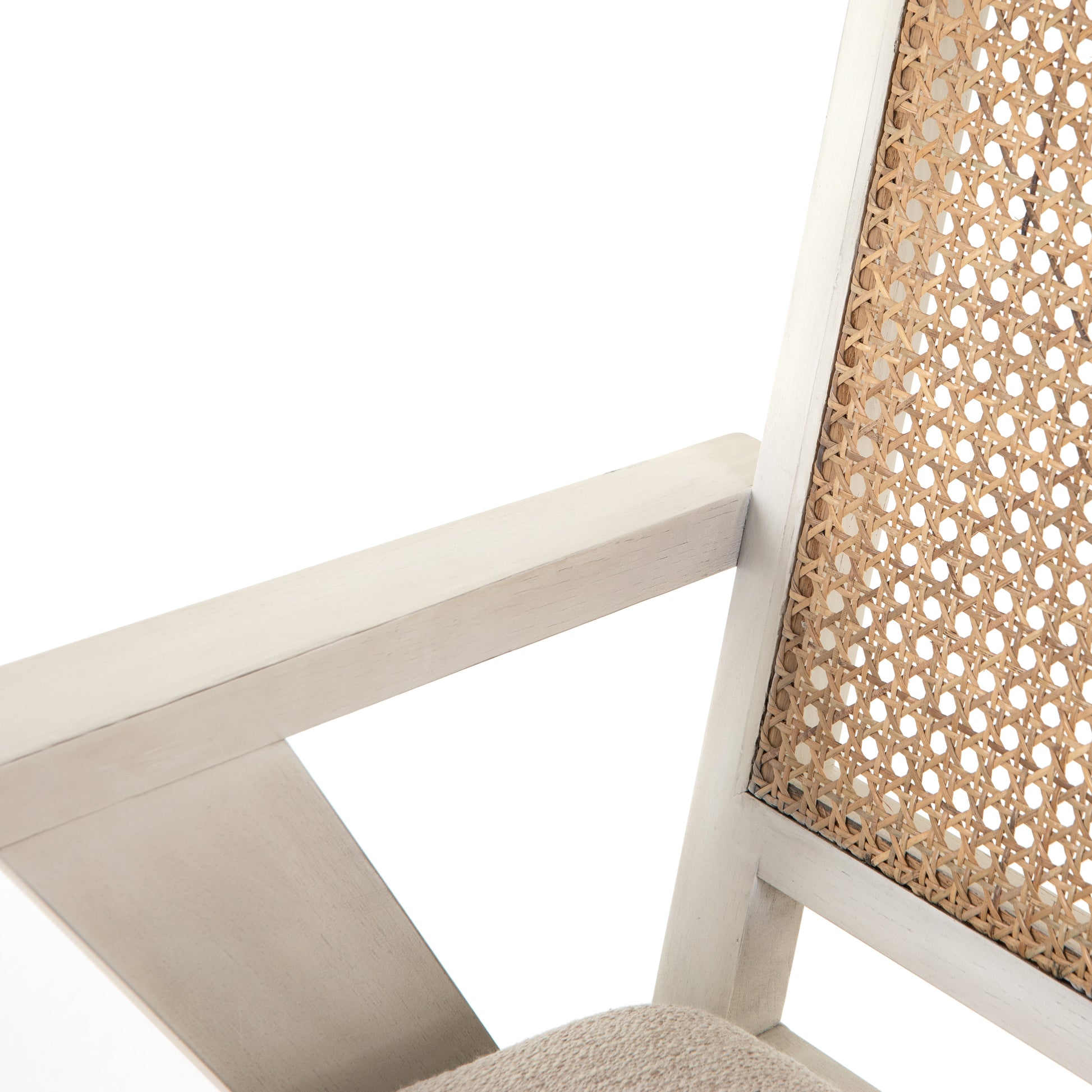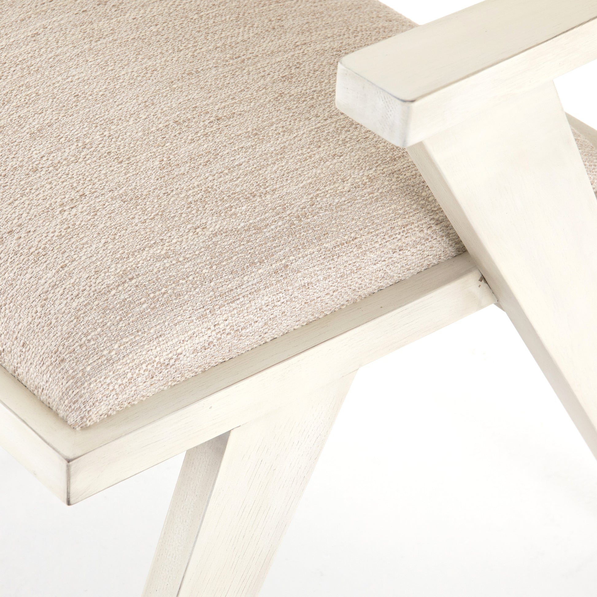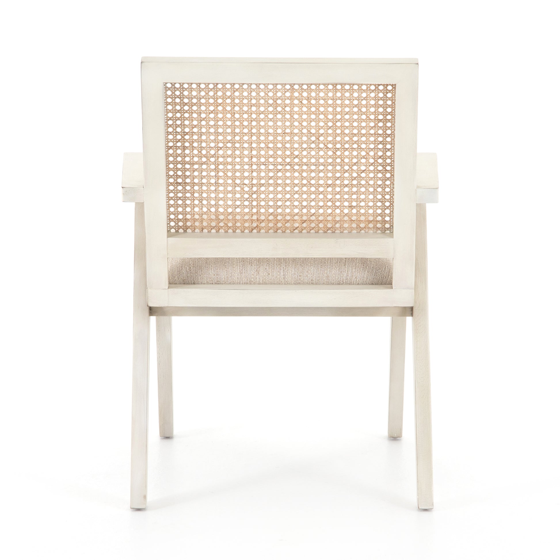 Inspired by Swiss-French architects Le Corbusier and Pierre Jeanneret, a monochromatic dining chair features cream-finished solid oak framing, with woven cane seating, for a texture-driven look with mid-century vibes. Performance fabrics are specially created to withstand spills, stains, high traffic and wear, ensuring long-term comfort and unmatched durability.