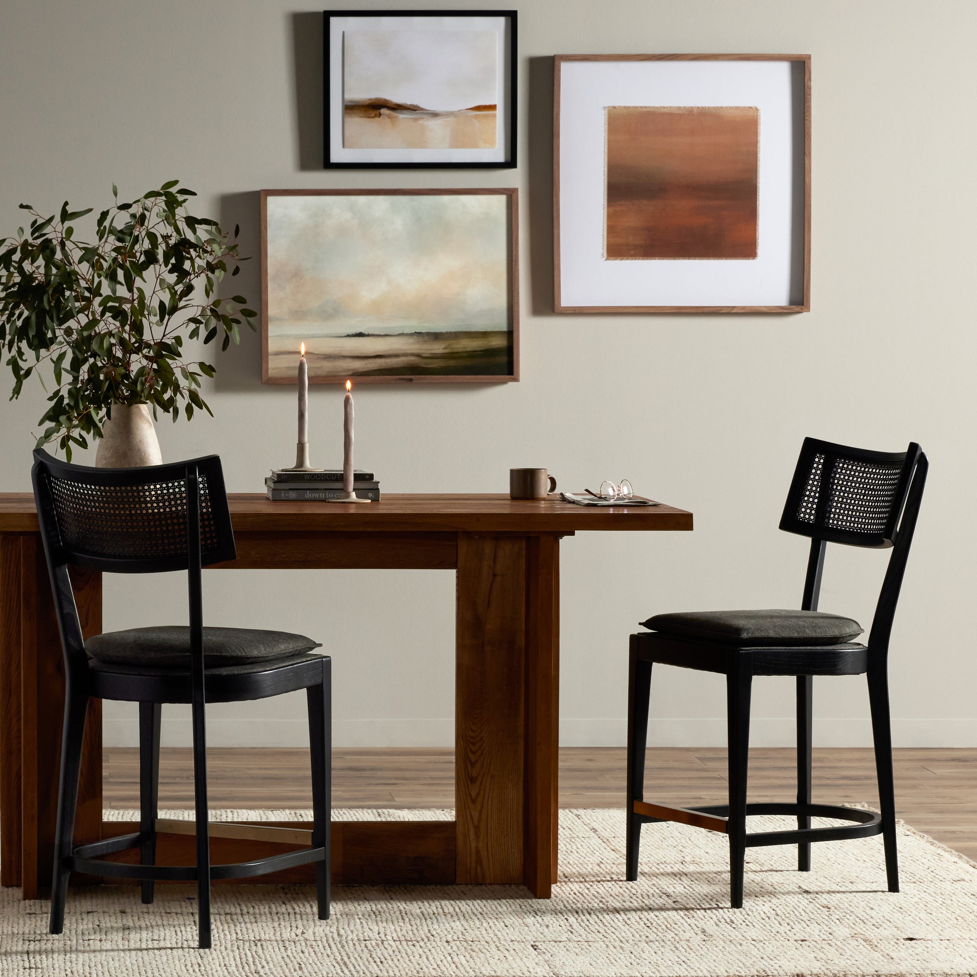 Mixed materials refresh retro styling. Light-toasted nettlewood frames a textural inlay of natural cane for a beautifully monochromatic look. Light, linen-blend seating of high-performance fabric brings modern sensibility to the counter. Performance fabrics are specially created to withstand spills, stains, high traffic and wear, ensuring long-term comfort and unmatched durability.