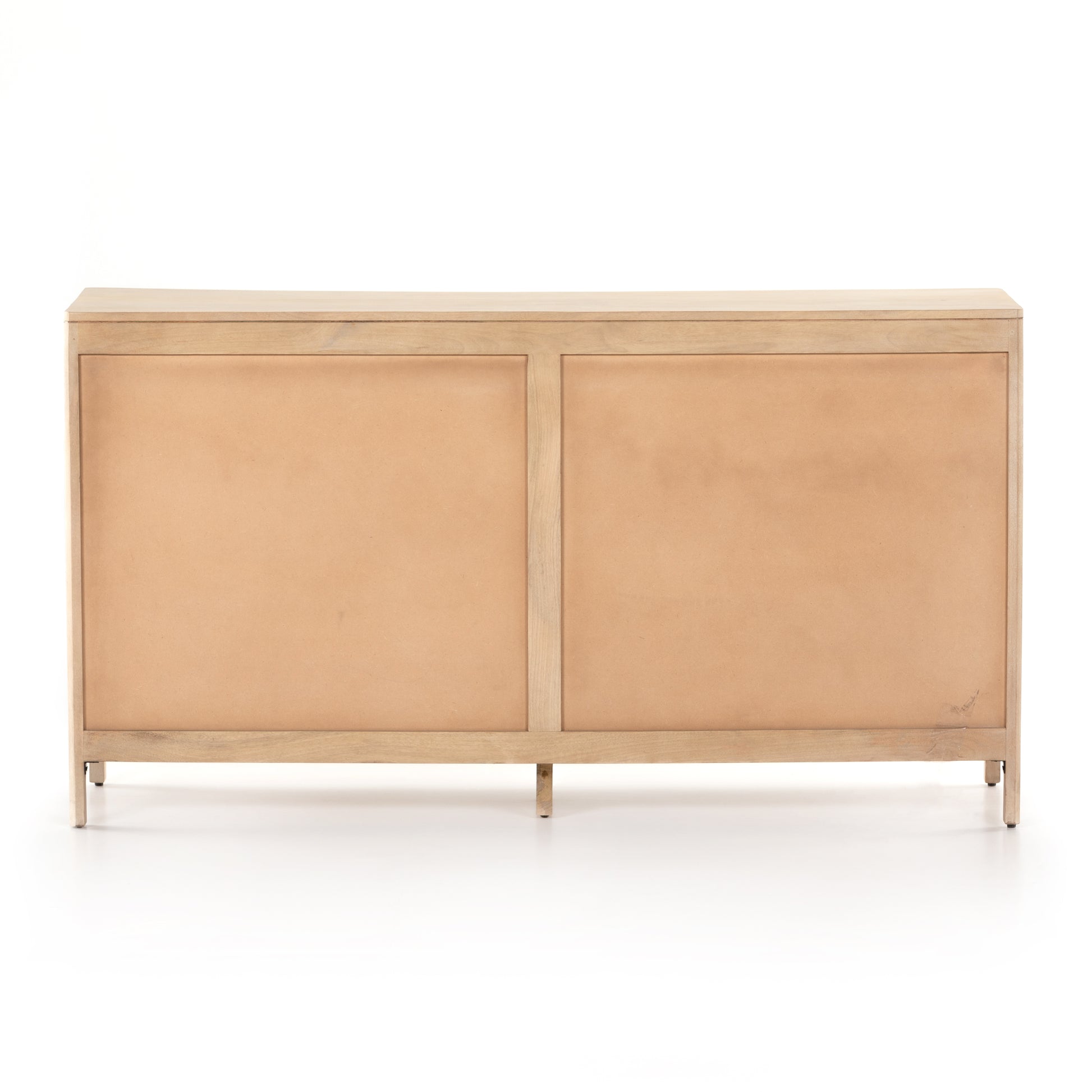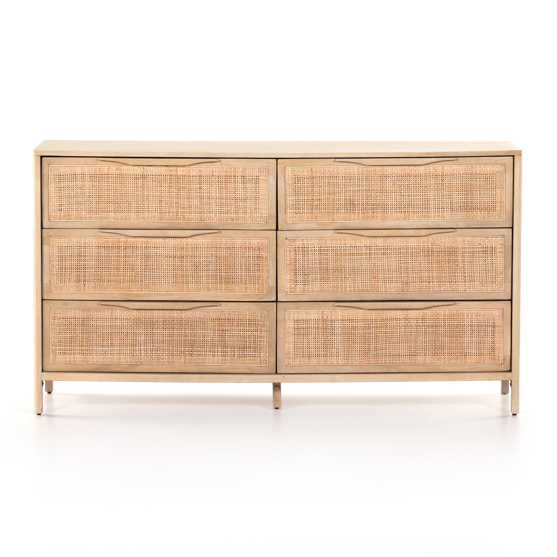 Natural mango encases six spacious drawers of woven cane, for a textural look with eye-catching contrast.
