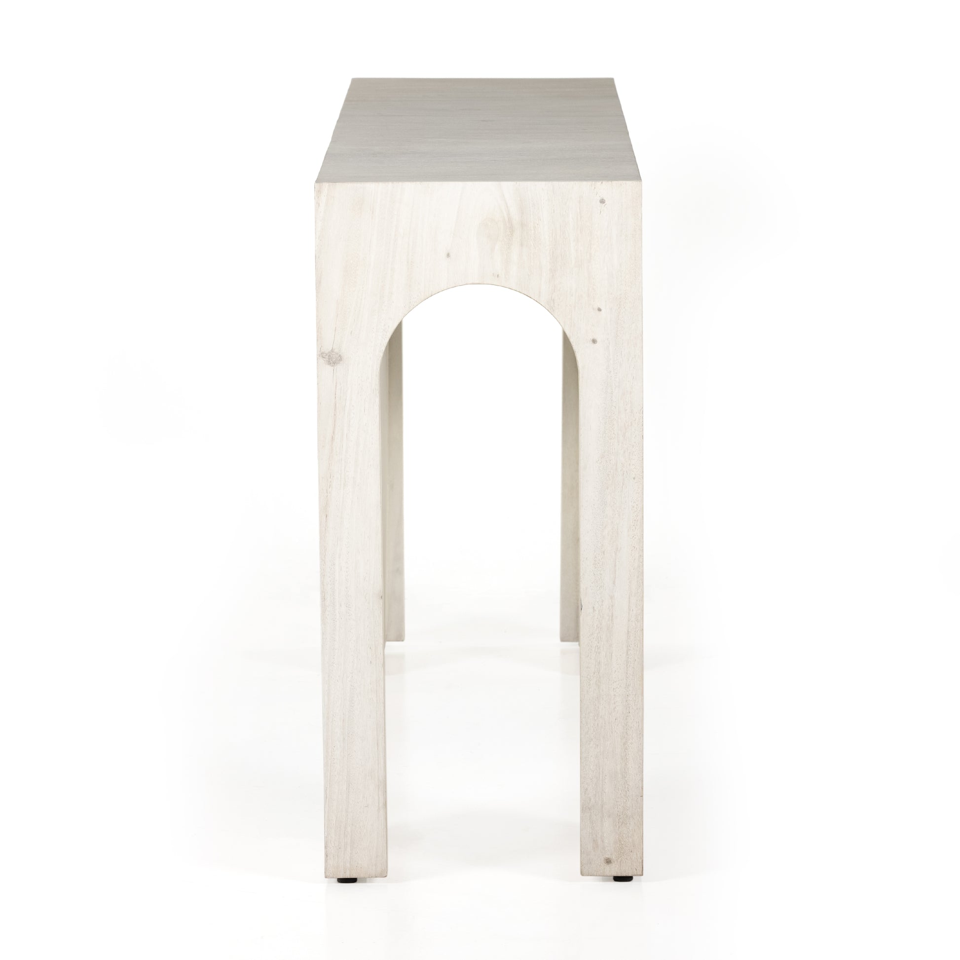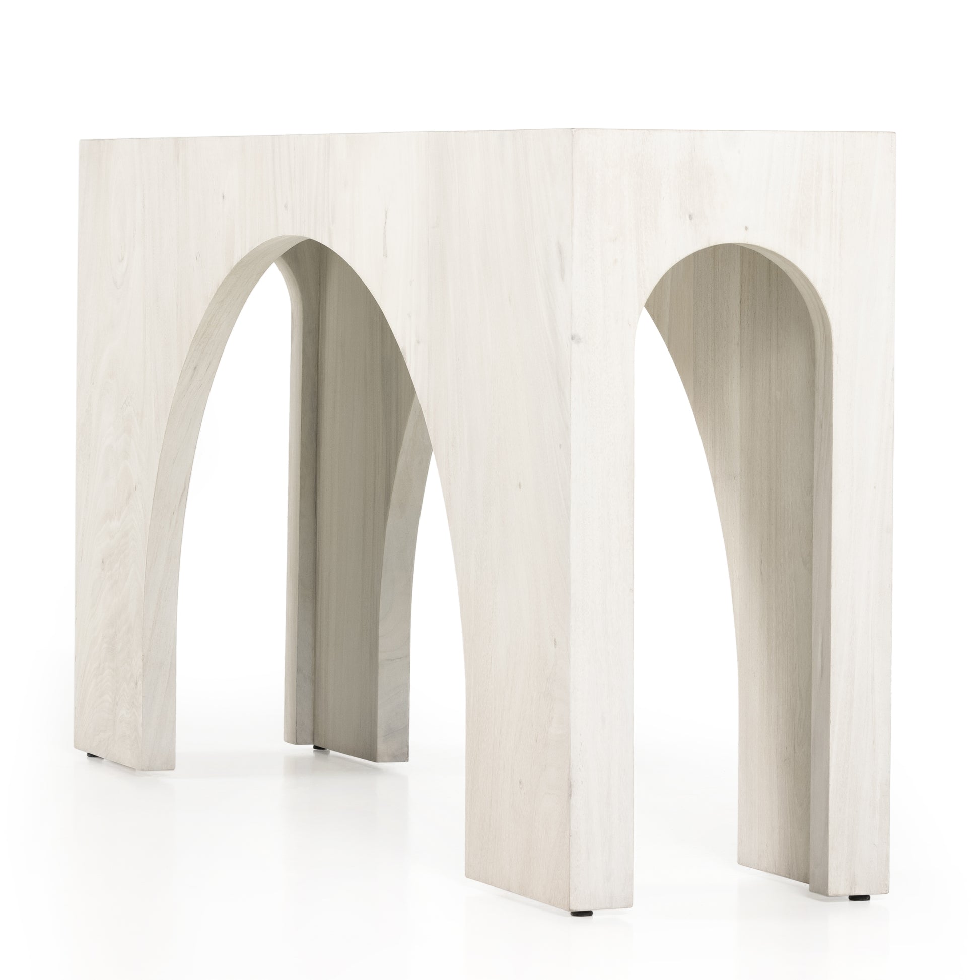 Clean and simple, with great impact. Made from bleached Guanacaste, shapely arches and block corners speak to the architectural inspiration behind this eye-catching console table.