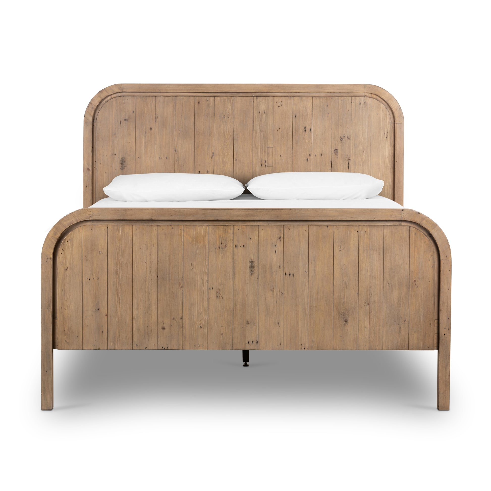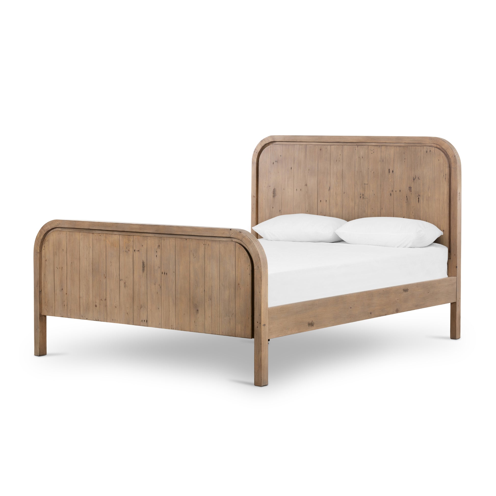 Made from mixed reclaimed woods for a natural look, curved head and foot boards bring a touch of softness to the bedroom. This bed is not compatible with an adjustable mattress.