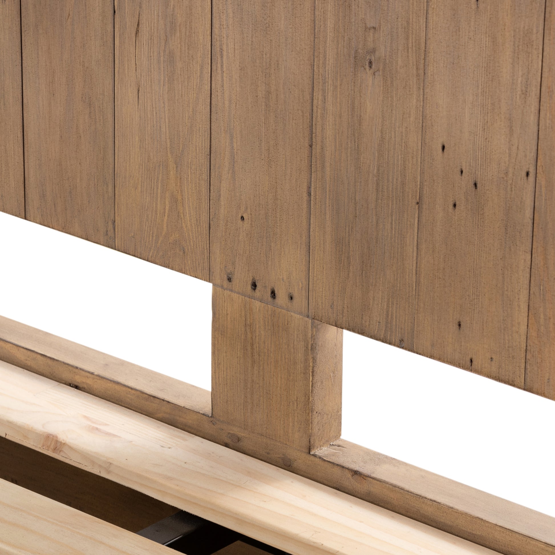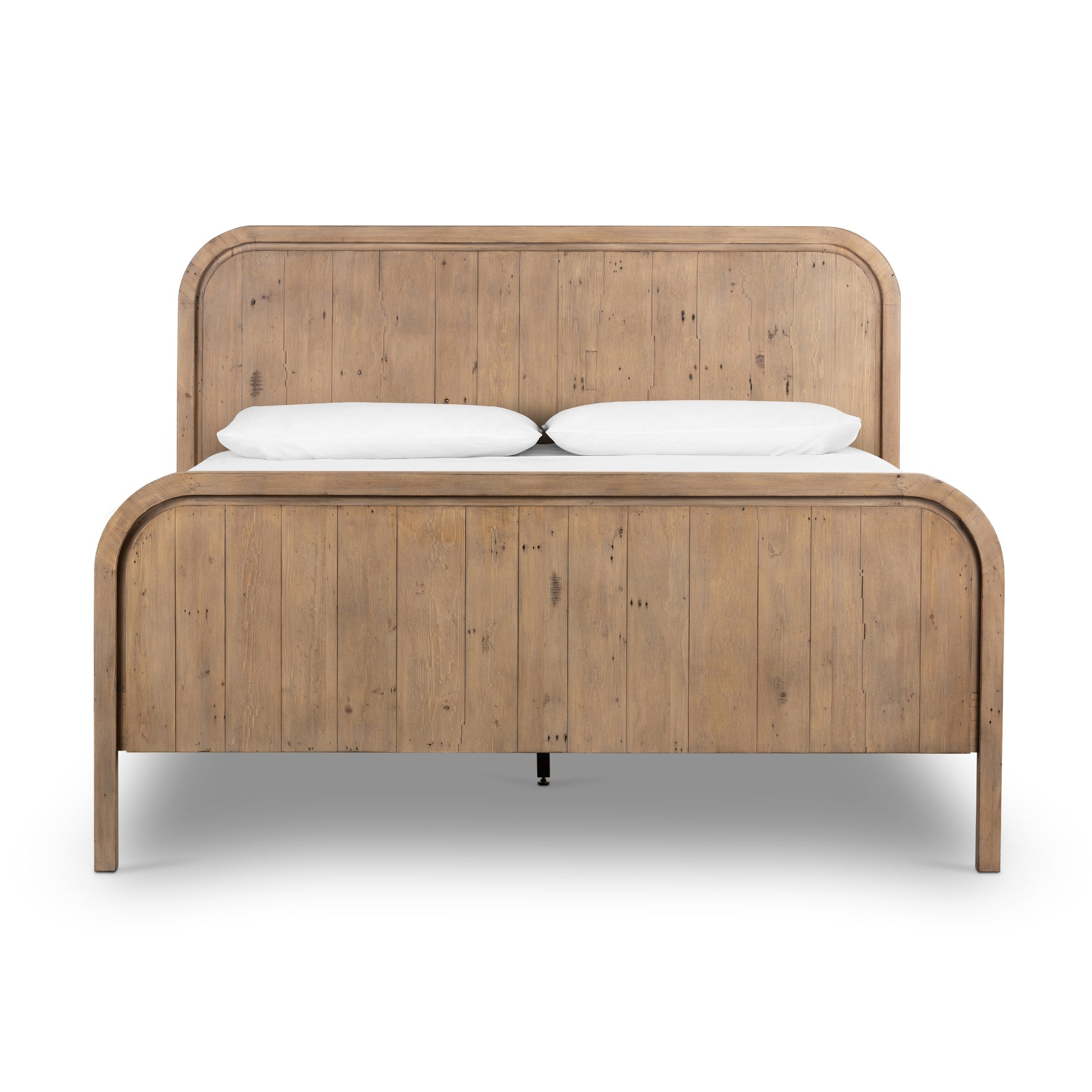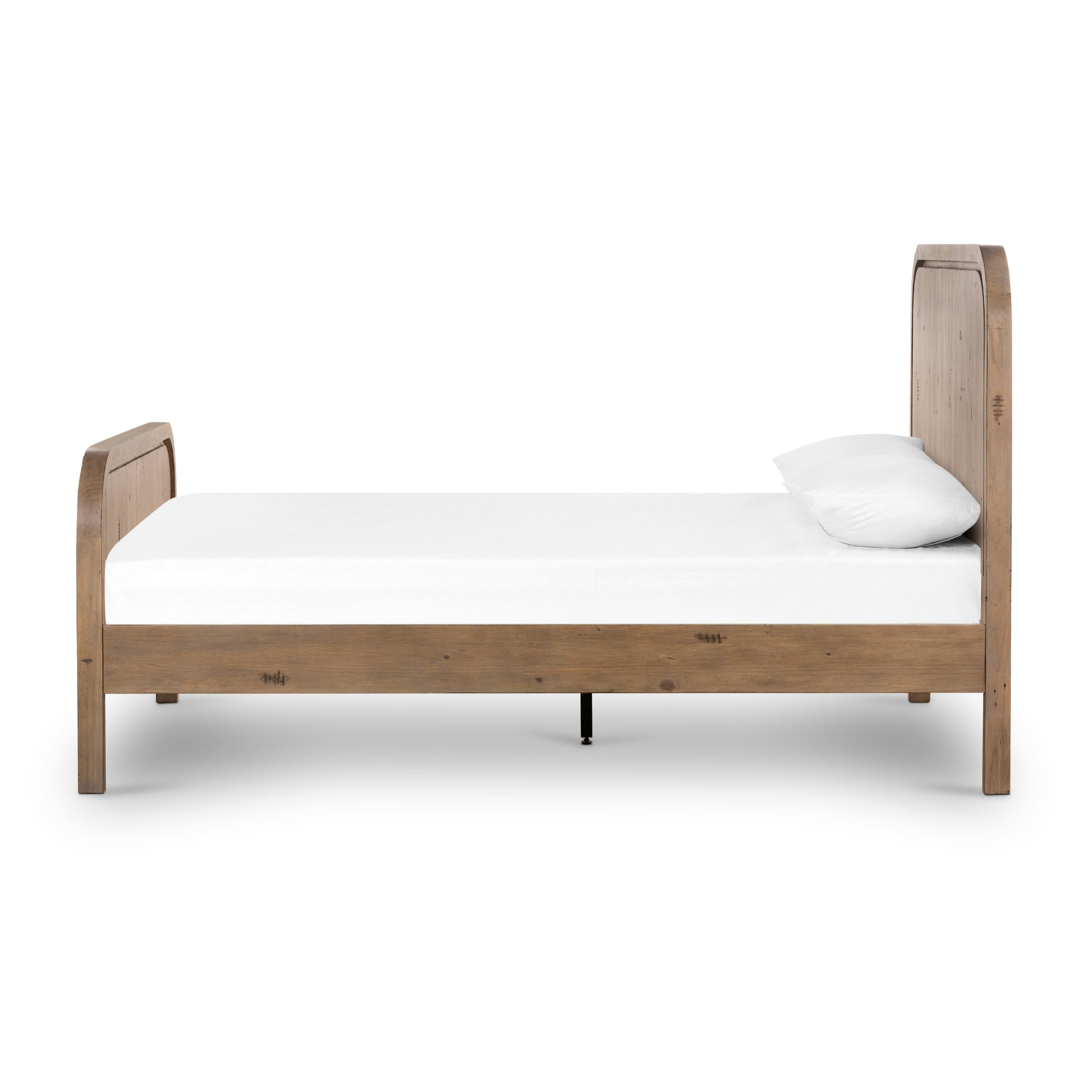 Made from mixed reclaimed woods for a natural look, curved head and foot boards bring a touch of softness to the bedroom. This bed is not compatible with an adjustable mattress.