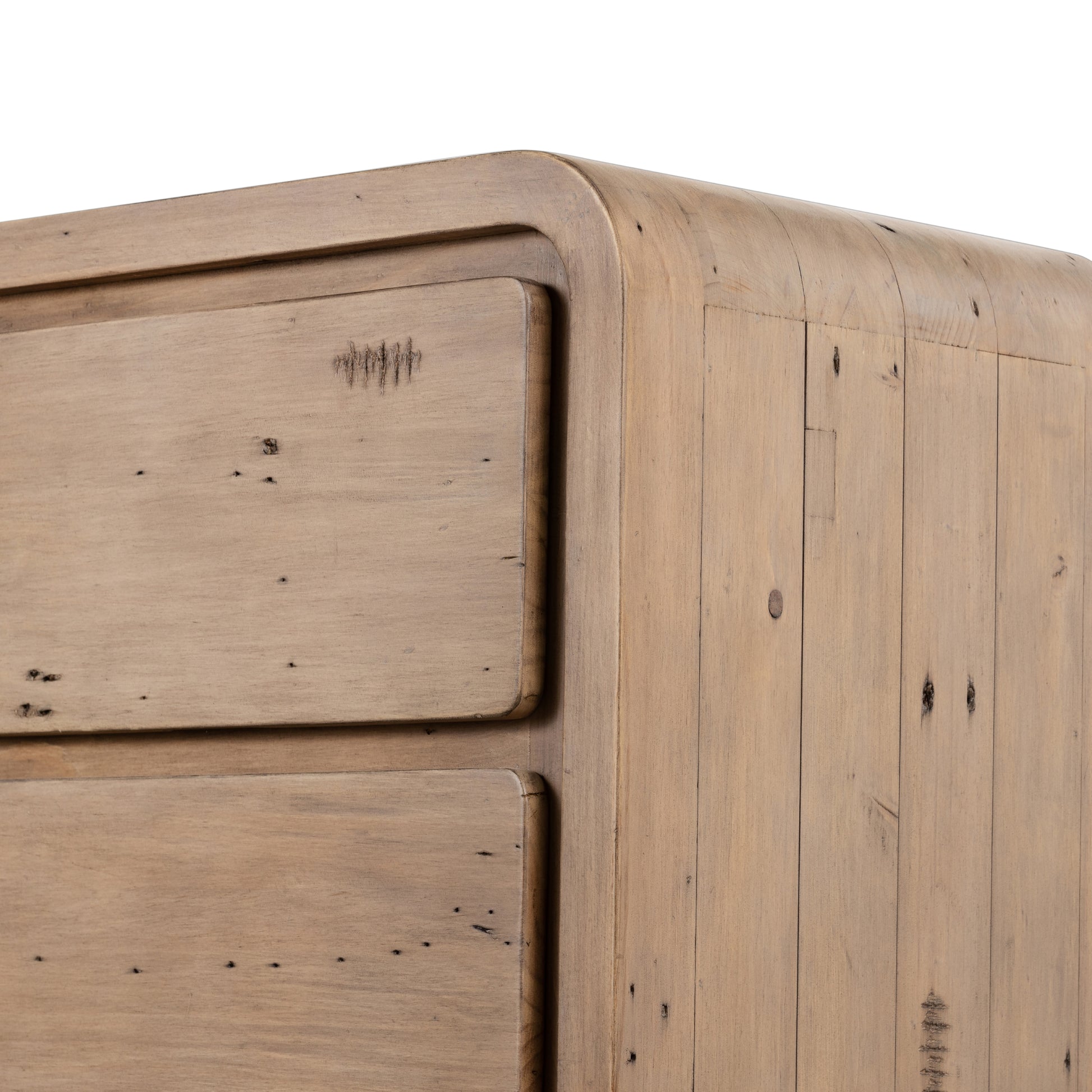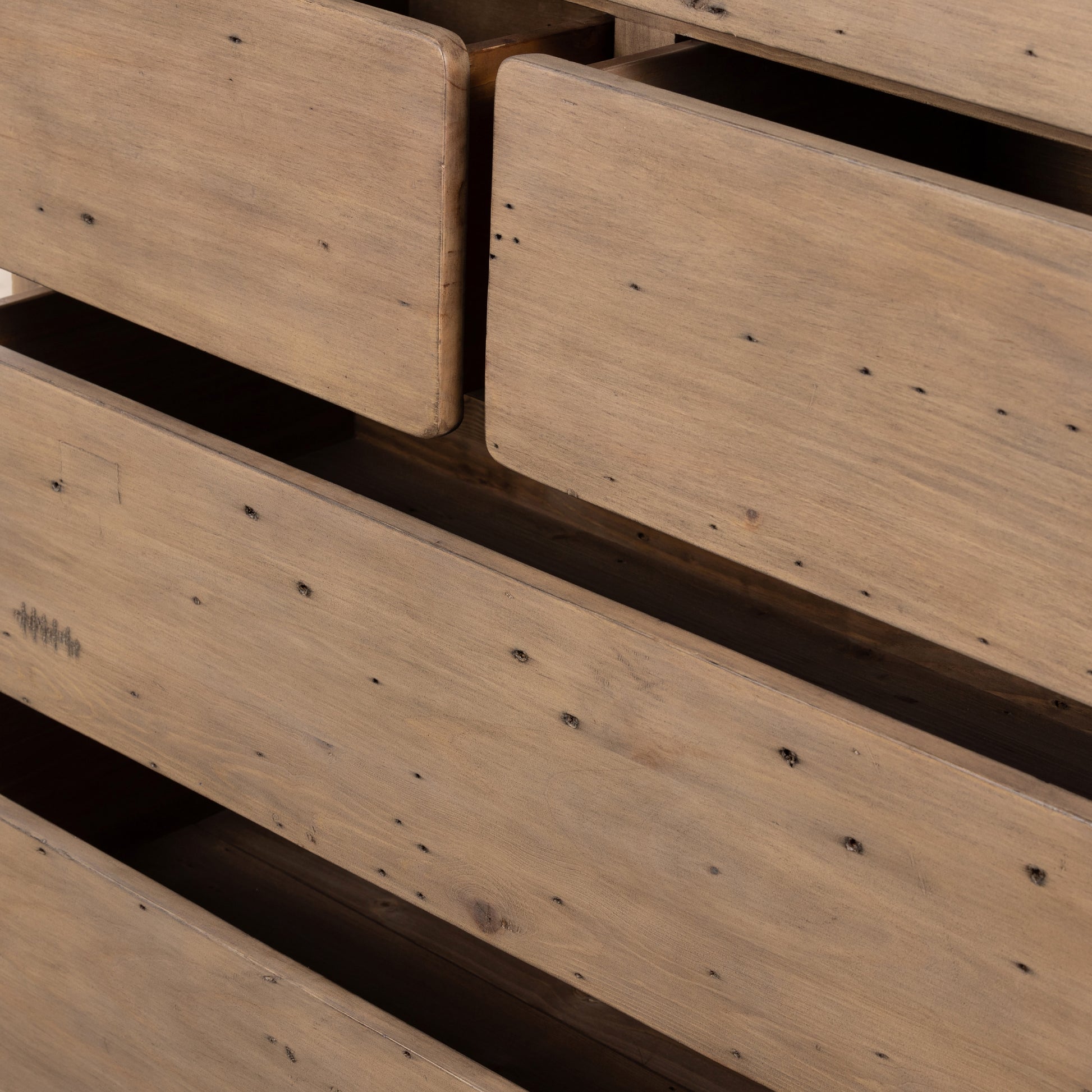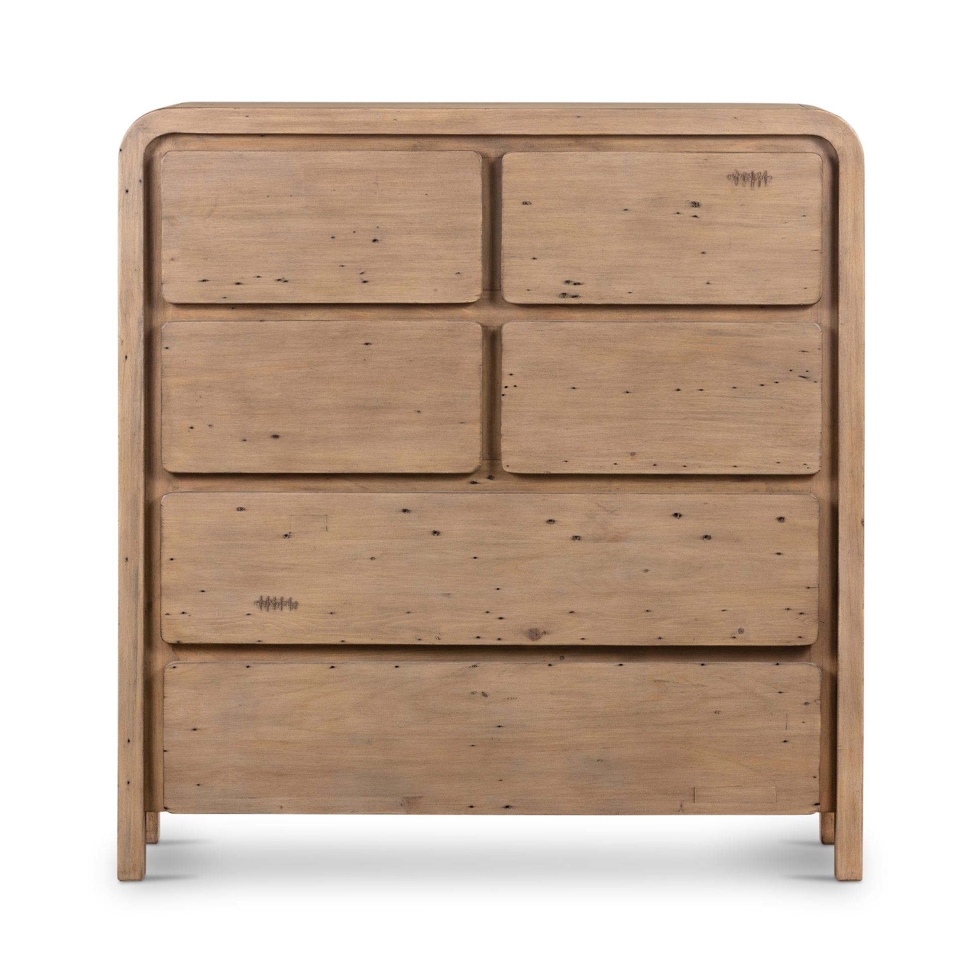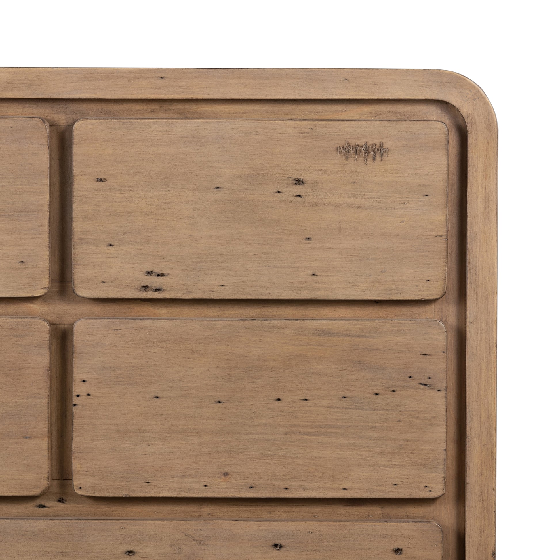Made from mixed reclaimed woods for a natural look, soft shaping plus six spacious drawers bring both style and storage to the bedroom.