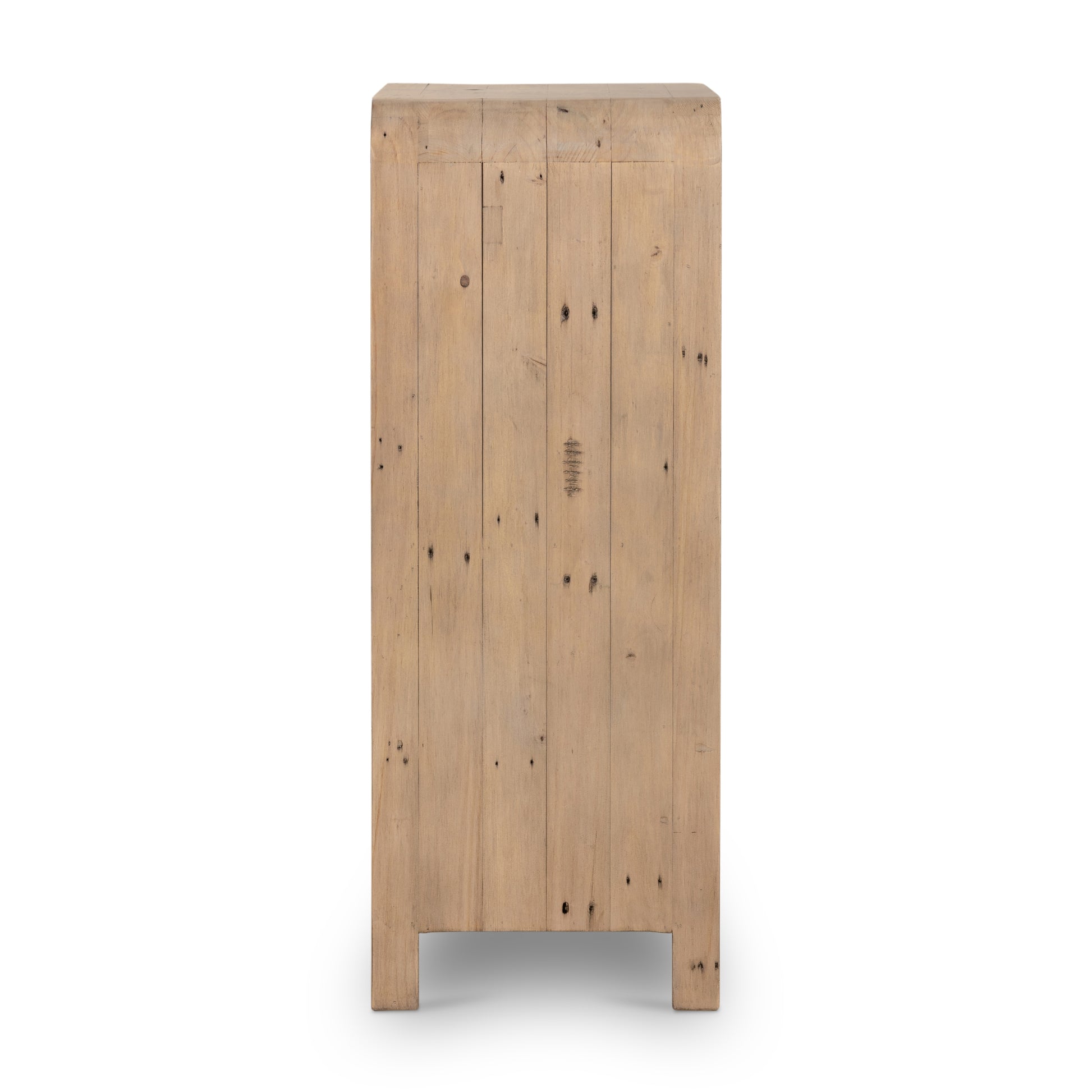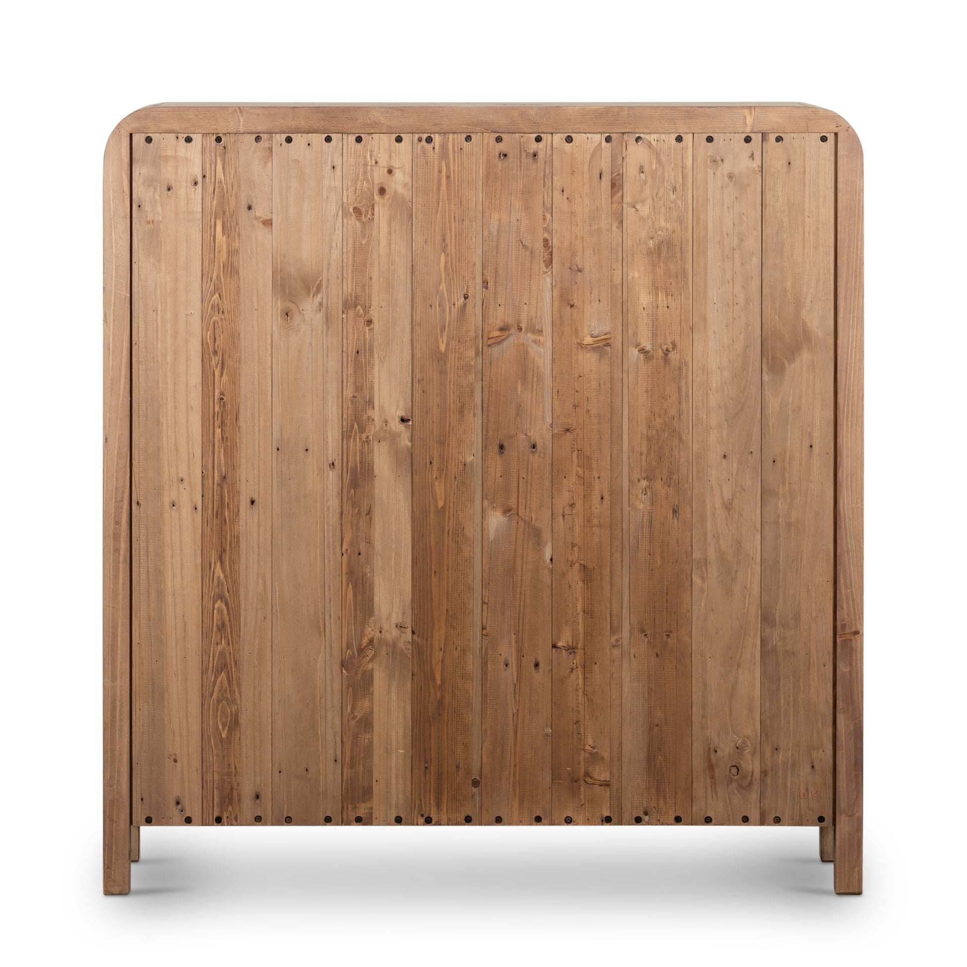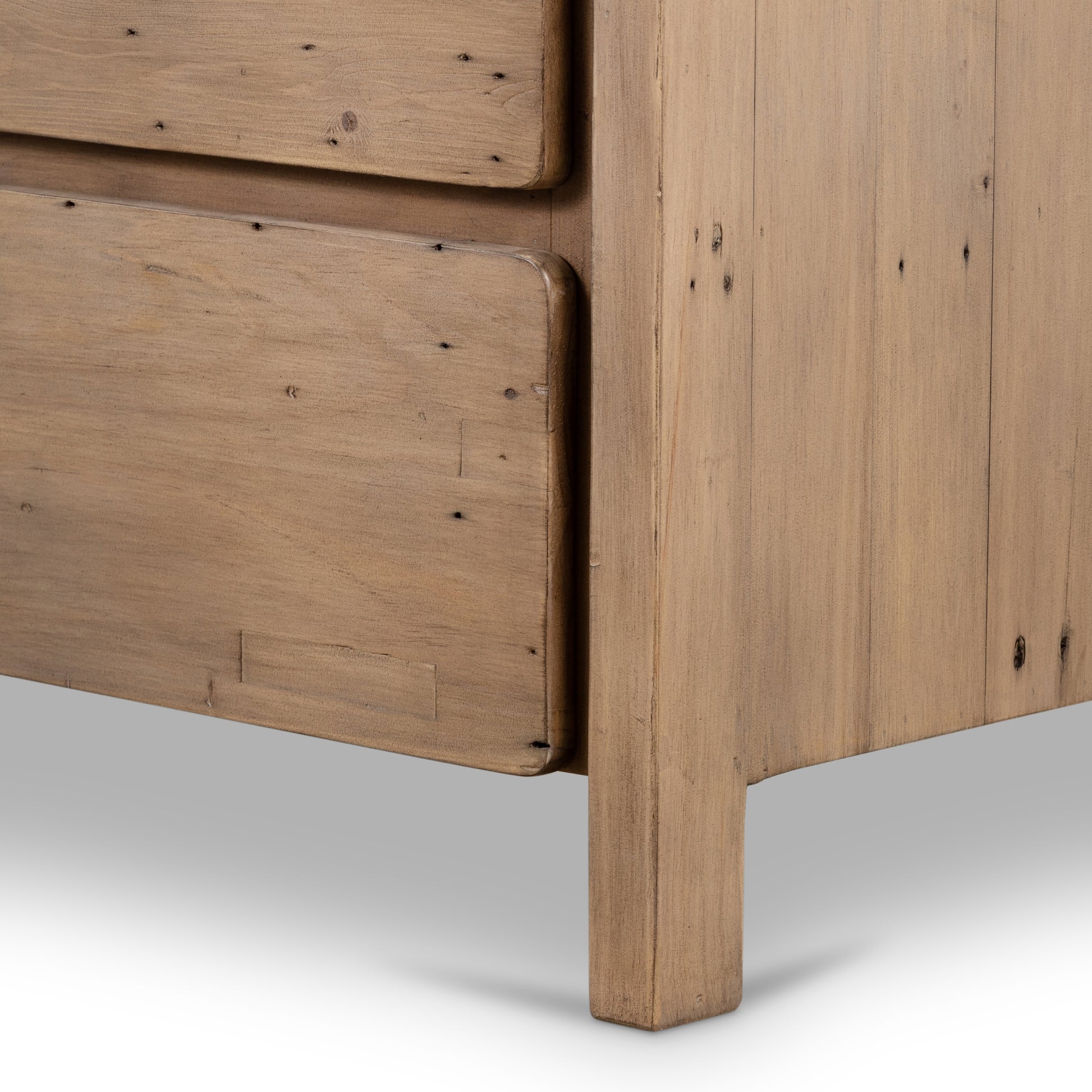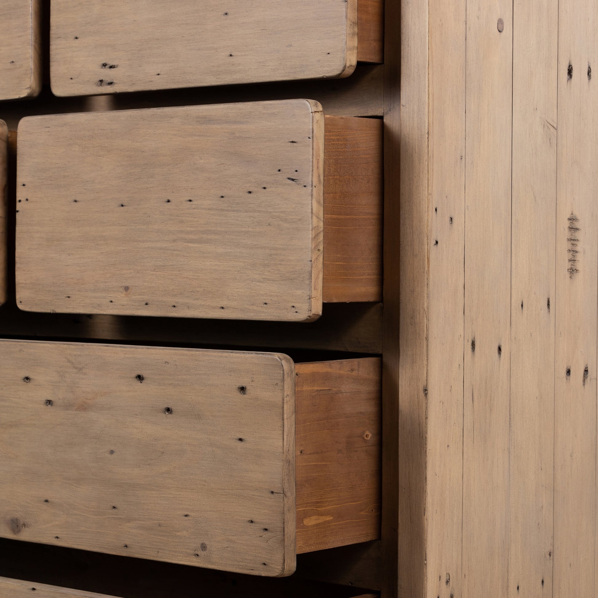 Made from mixed reclaimed woods for a natural look, soft shaping plus six spacious drawers bring both style and storage to the bedroom.
