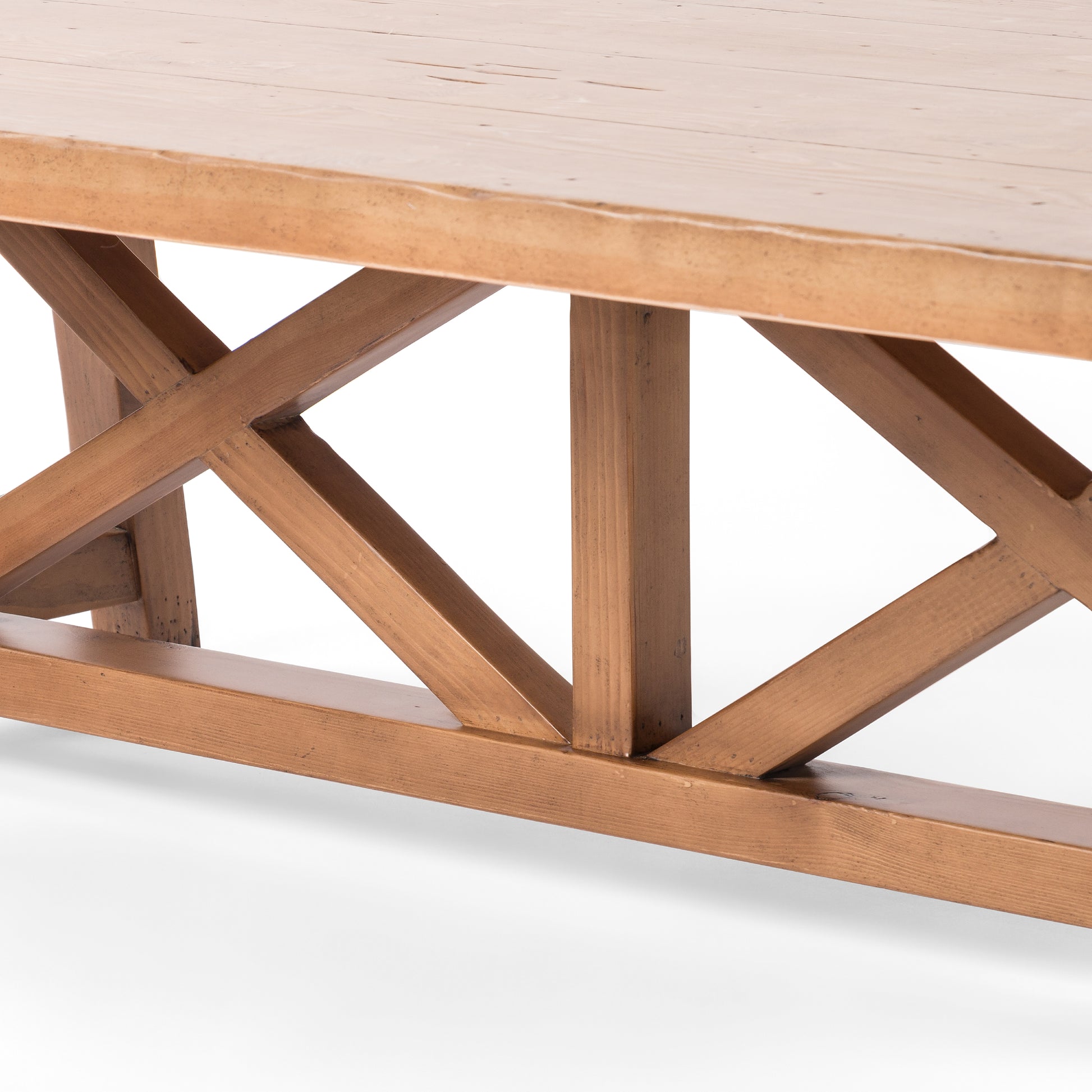 Inspired by European farmhouse design, solid pine forms an X-shape base for traditional, trellis-style look.