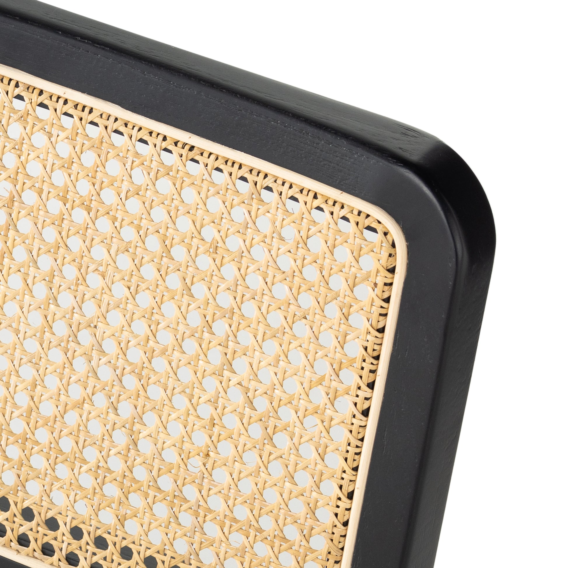 Modern materials refresh a midcentury look. Solid, ebony-brushed beechwood frames a textural inlay of natural cane, with linen-like high-performance seating for smart sensibility. Performance fabrics are specially created to withstand spills, stains, high traffic and wear, ensuring long-term comfort and unmatched durability.