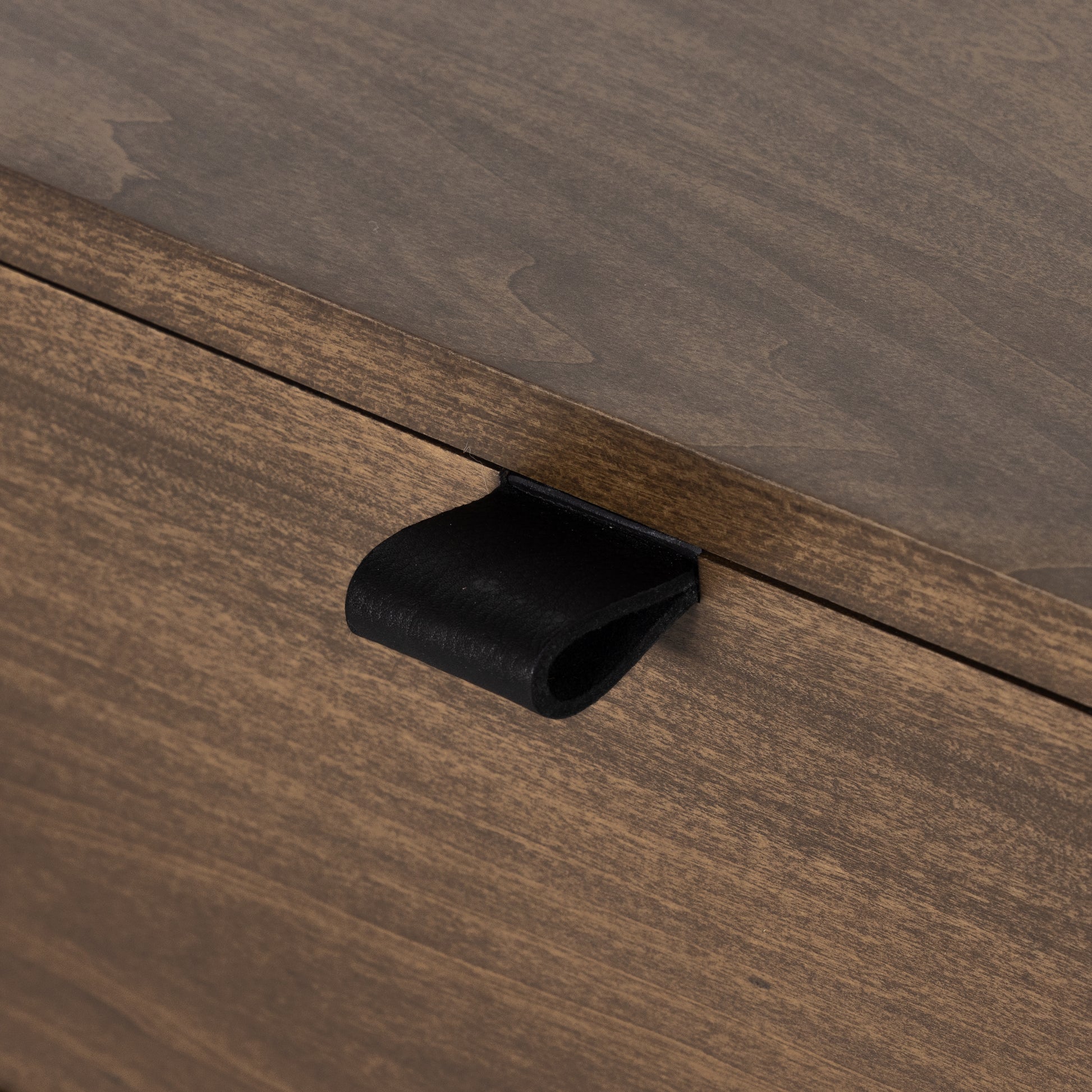 Inspired by clean midcentury design, a stylish dresser of auburn-finished poplar offers plenty of bedroom storage space thanks to nine spacious drawers. Metal-secured leather pulls add a textural element of surprise.
