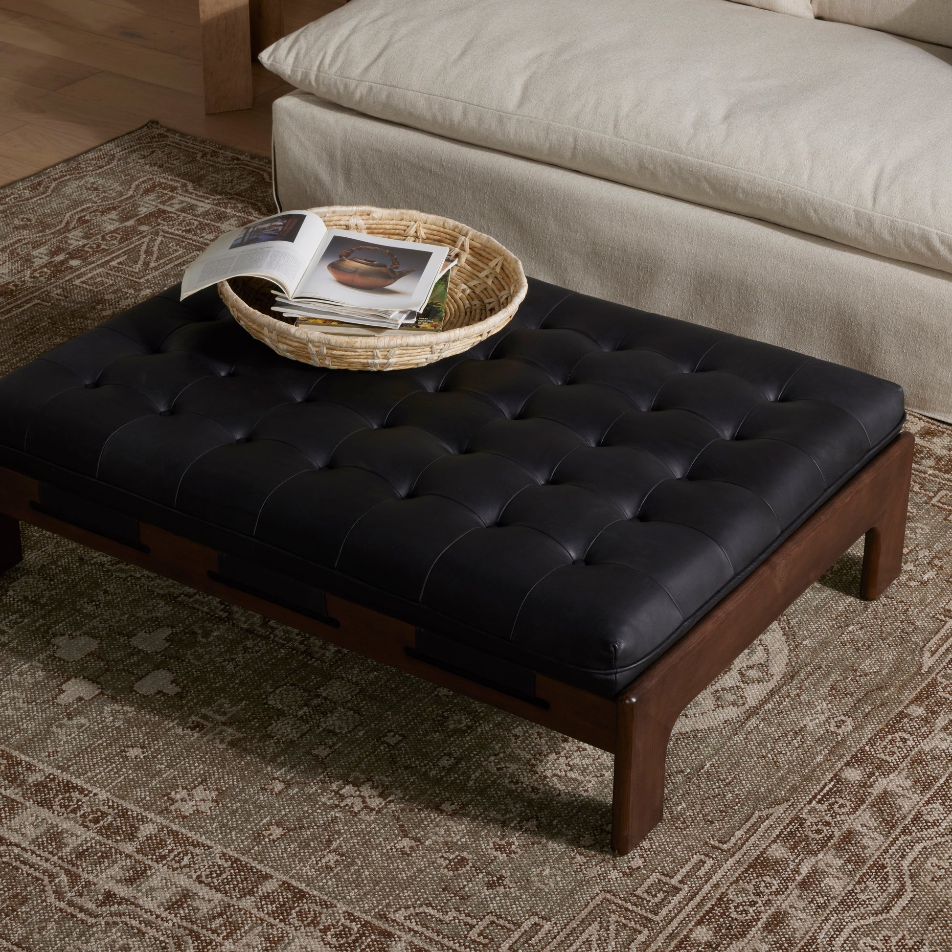 A Seventies-era style inspired by a flea market find. Top-grain leather features dramatic tufting with sling detailing and wide ash framing below. Sourced from one of the oldest family-owned tanneries in Italy's Bassano del Grappa, heirloom leather is salvaged and processed from upcycled hides featuring an abundance of natural markings, scars and color variations. The result? Beautifully supple, buttery soft hides with an unmatched depth of color and richness, and an authentic lived-in look.