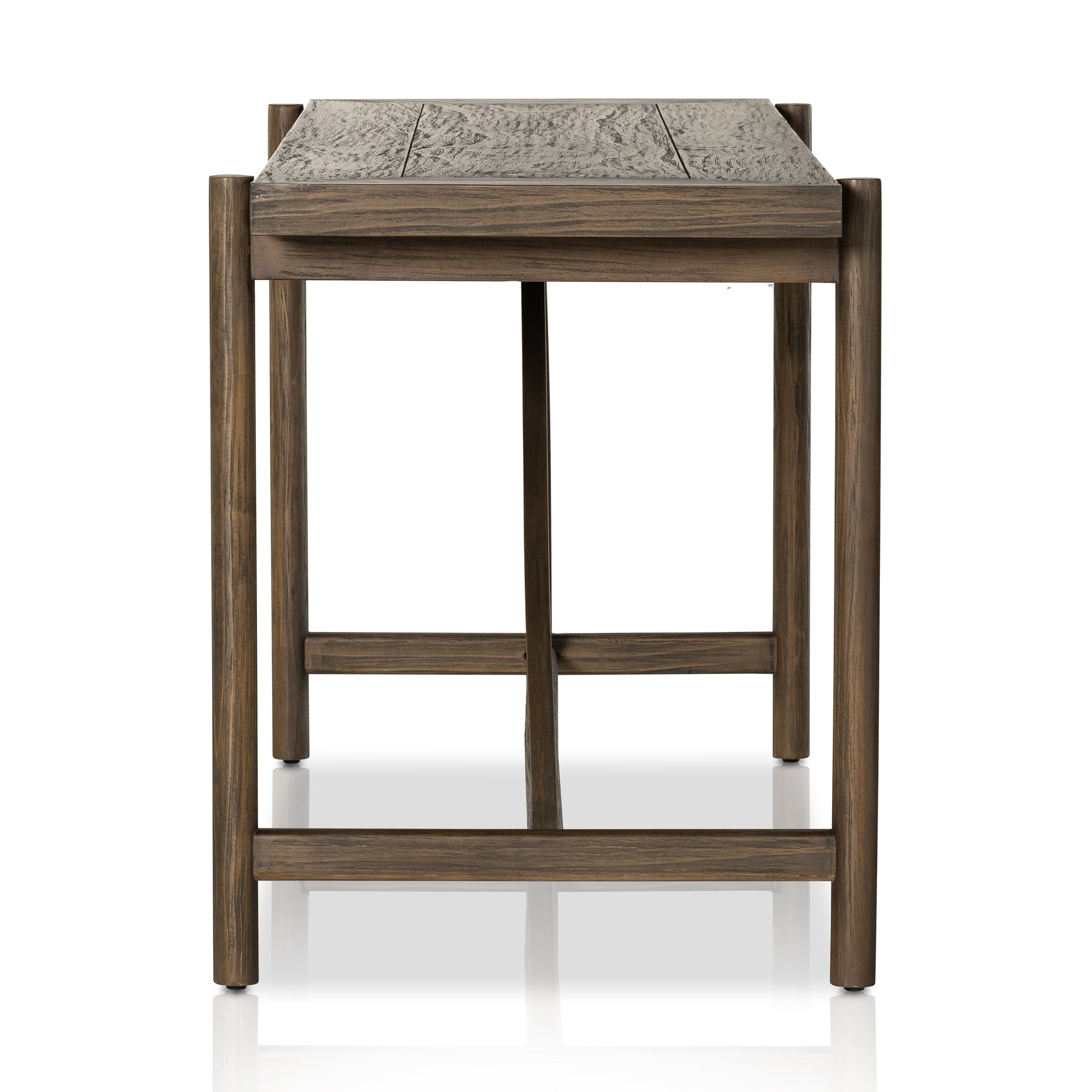 Hardworking industrial furniture inspired the hefty proportions of this solid wood console table. Structured, clean lines with exposed metal hardware add warm contrast.