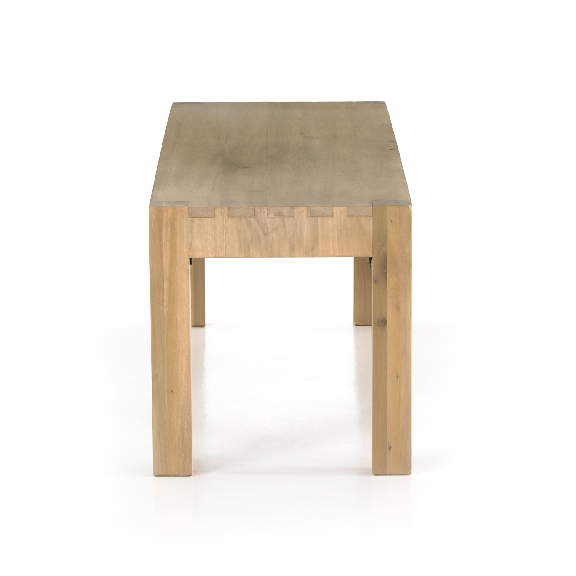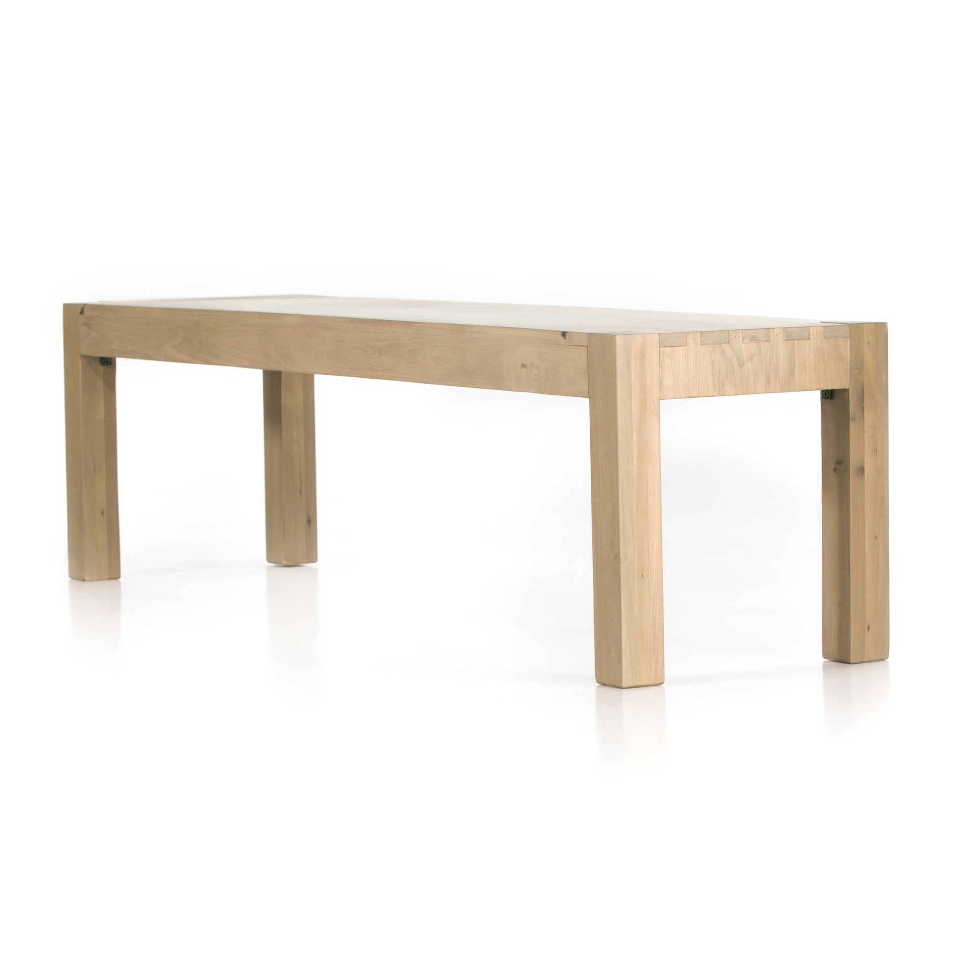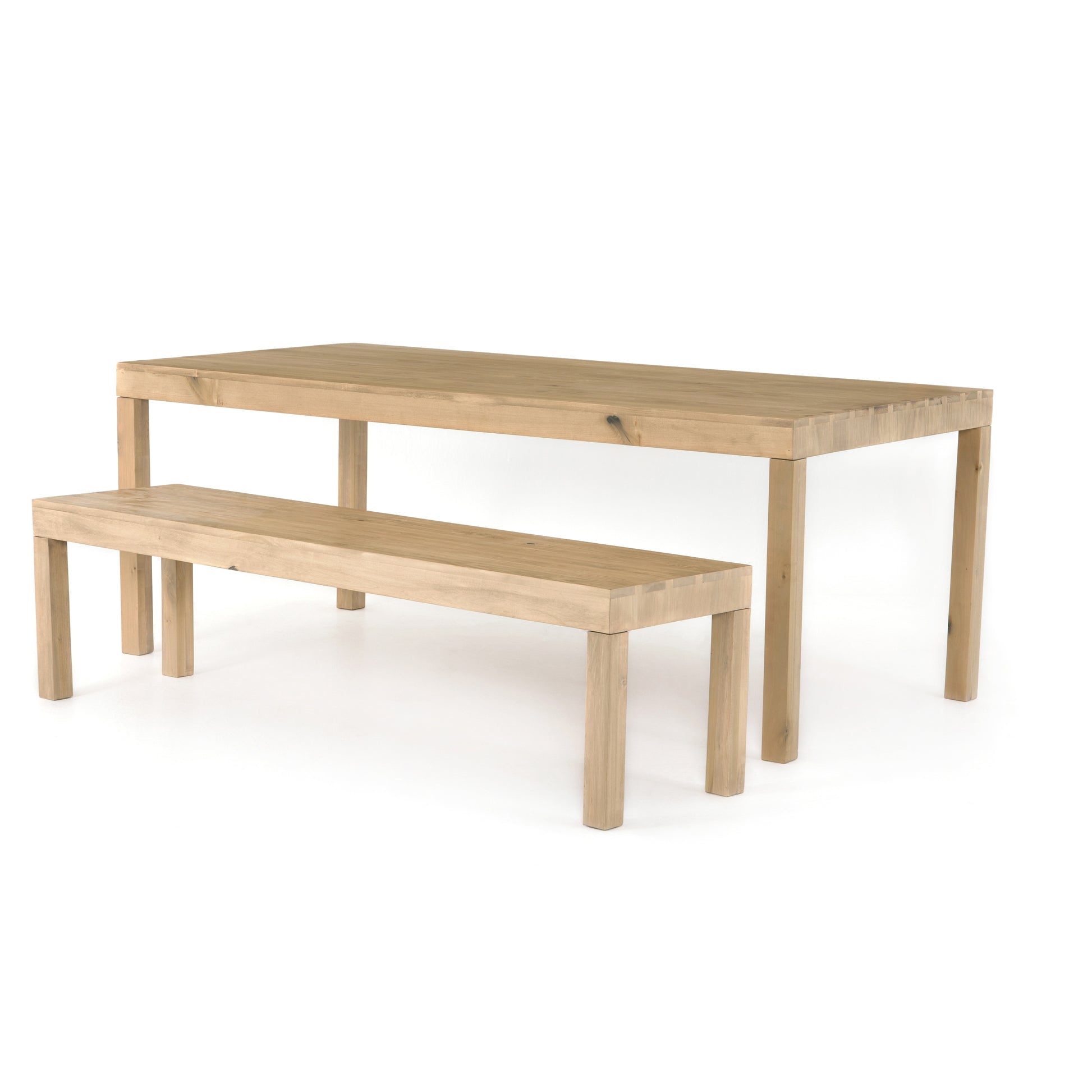 Beautifully simple in spirit. Solid dry-washed poplar forms a clean, Parsons-style dining bench with dovetail joinery, for a fresh update to Shaker-inspired styling.