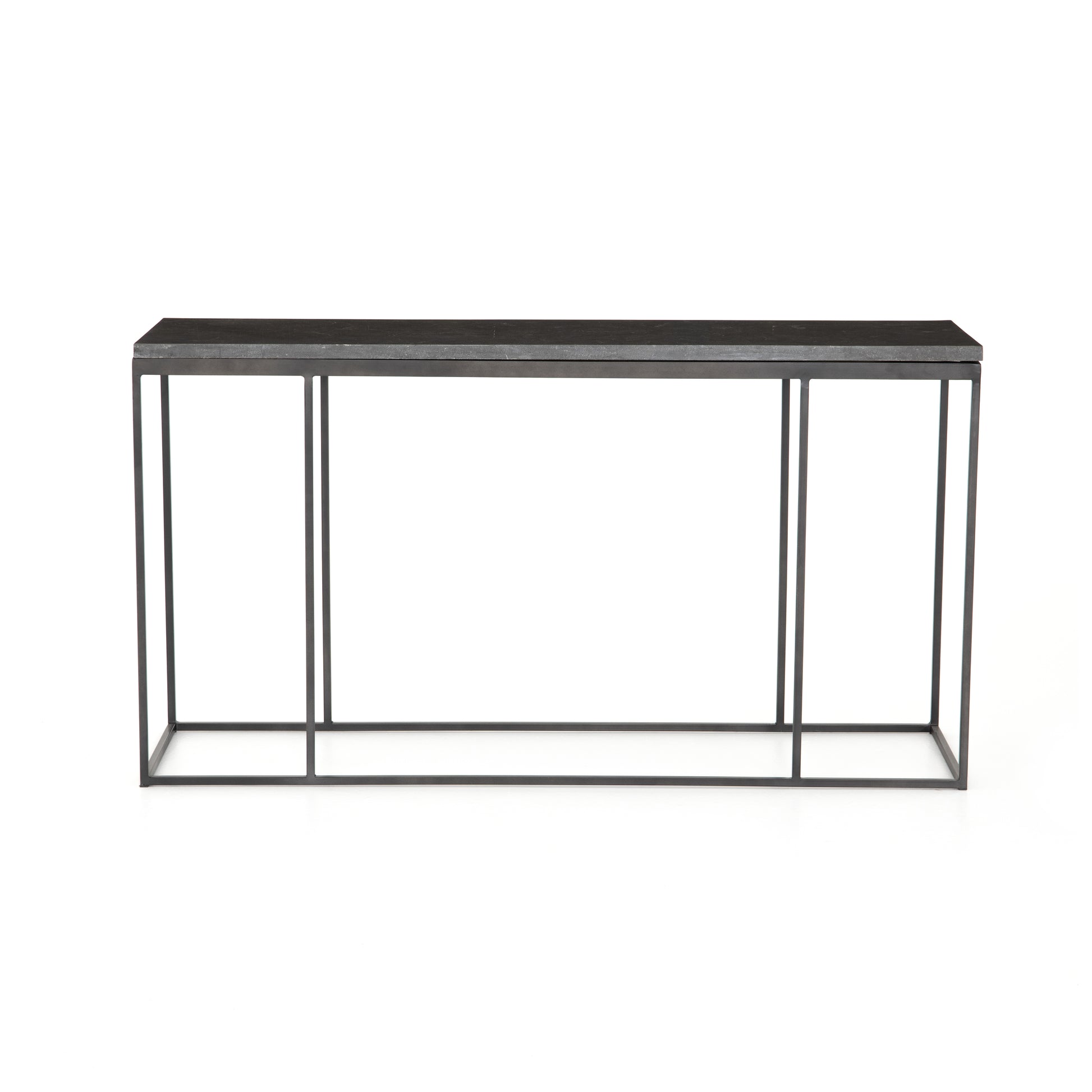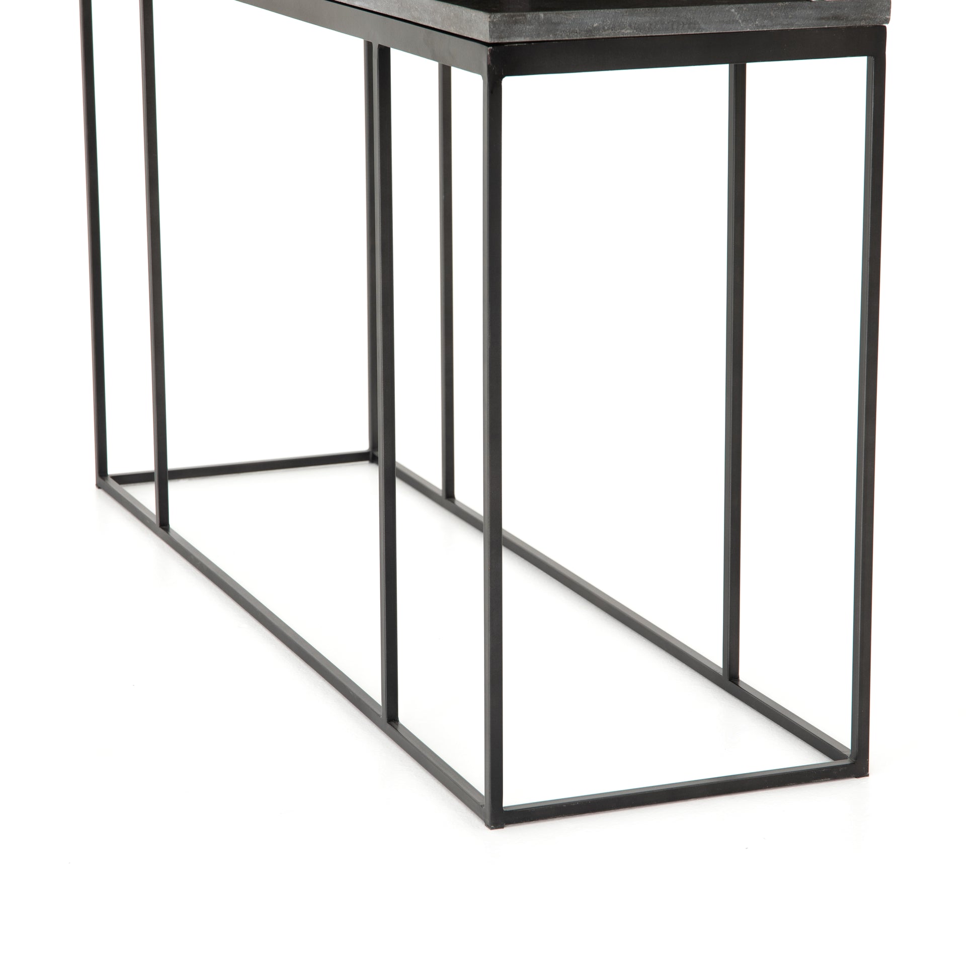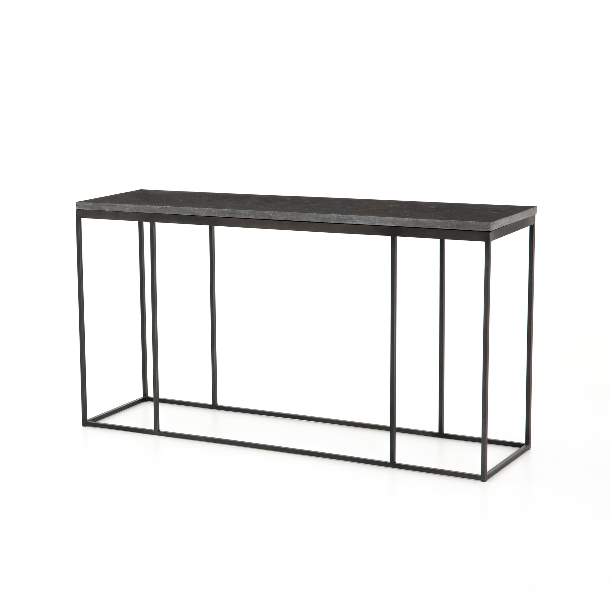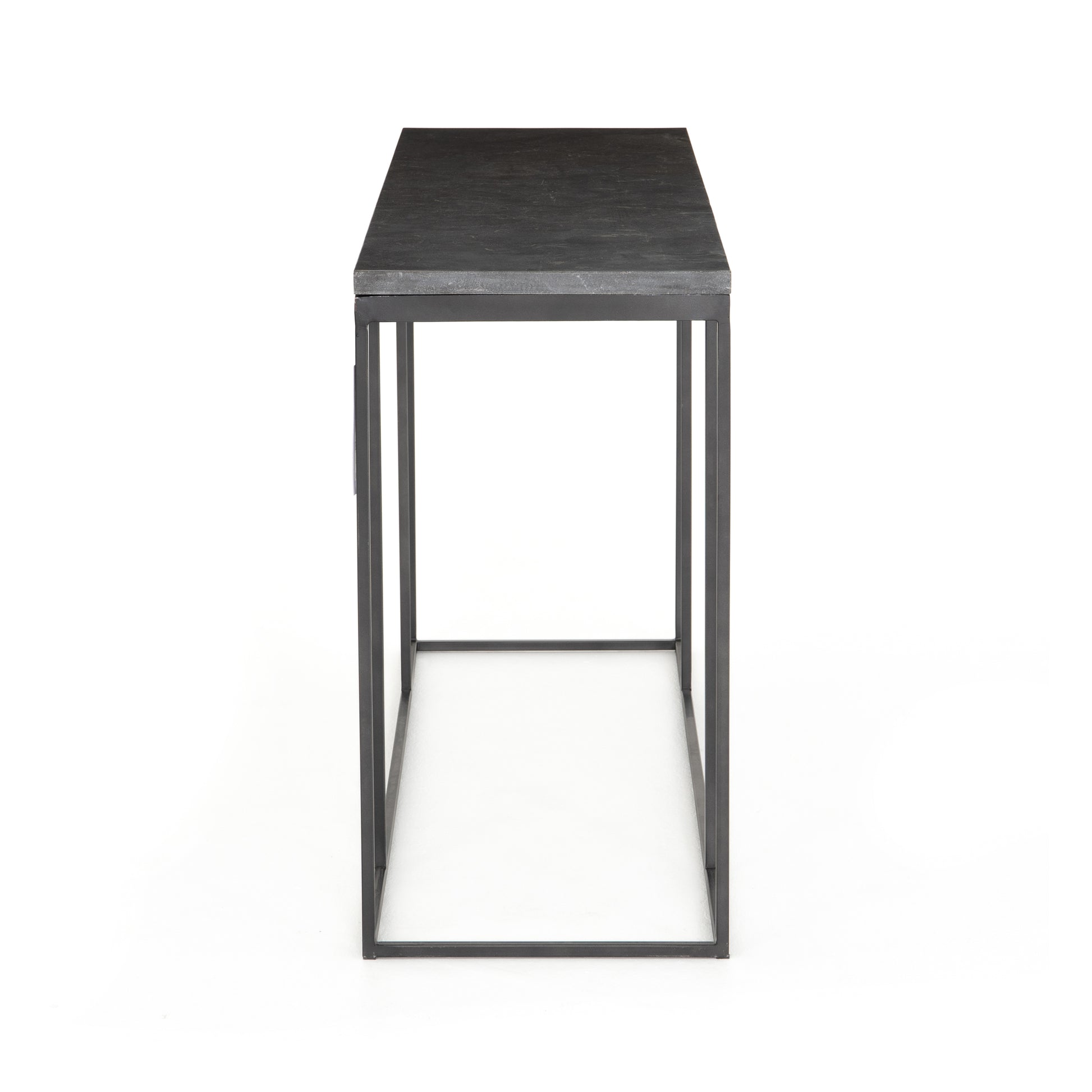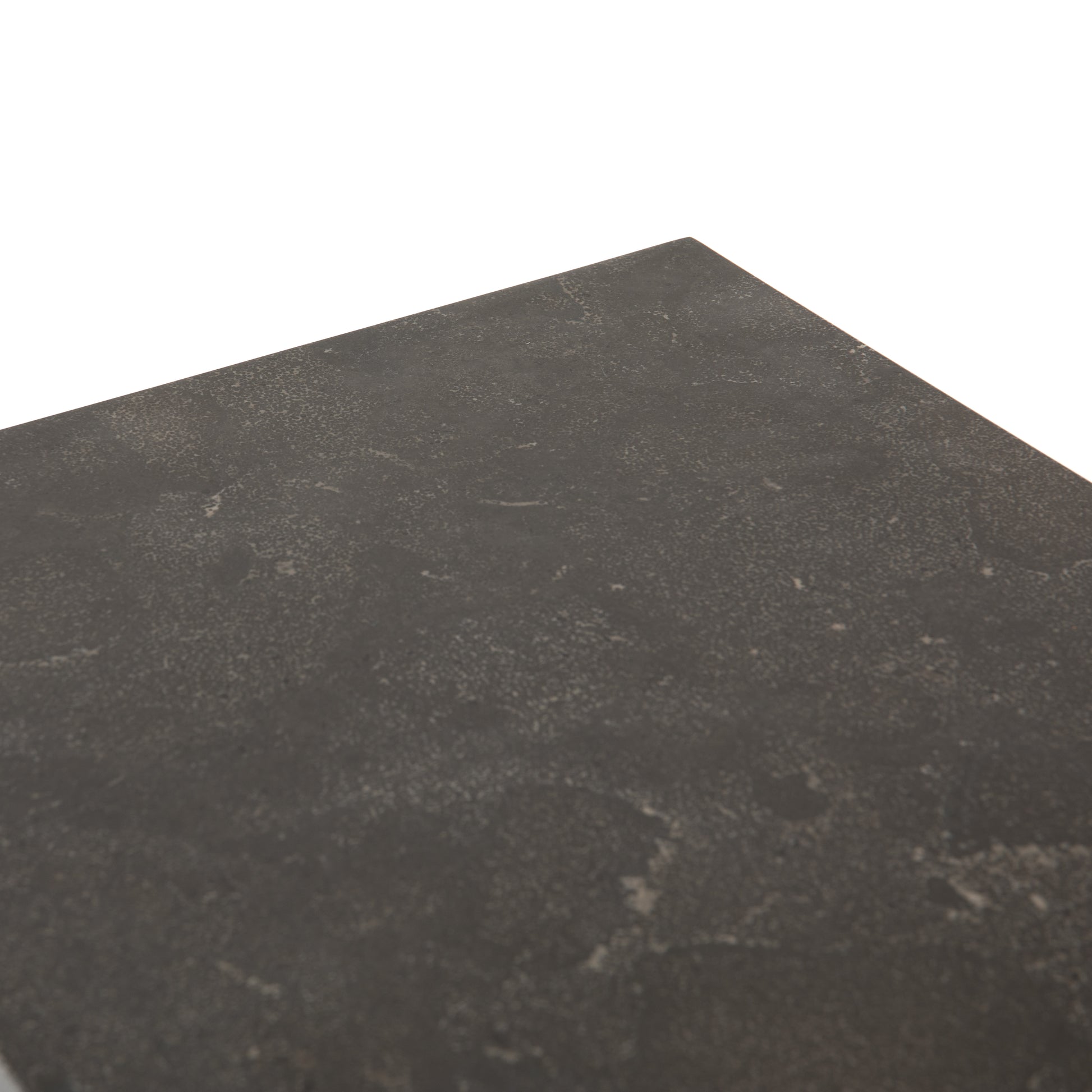 Spare beauty, casual elegance. A gunmetal Parson’s base with hand-rubbed, dimensional edges supports a rough-hewn bluestone slab that feels found and perfectly placed. White mineral lines and subtle color, texture and pattern variations are to be expected and speak to each stone's individual nature.