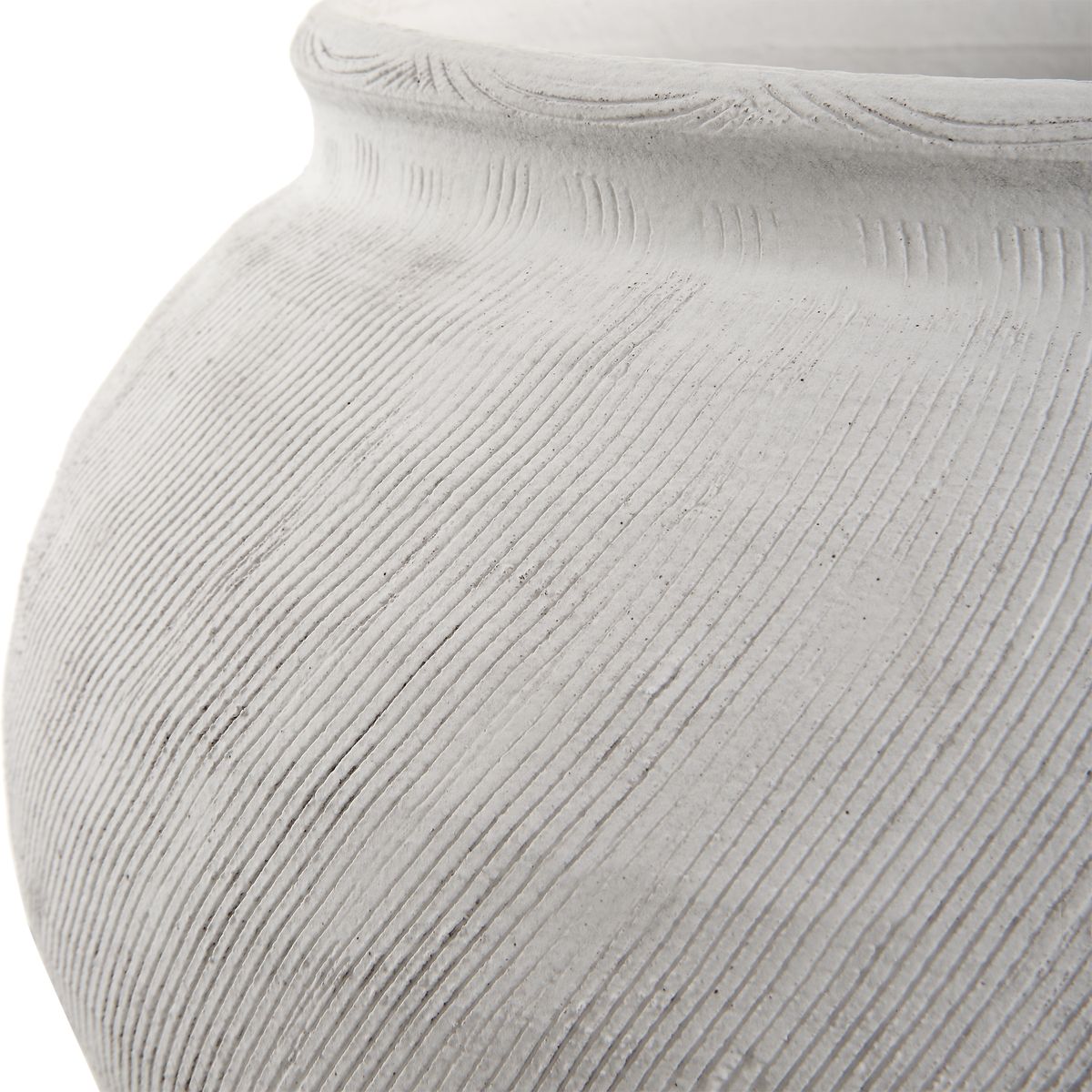 The beauty of the Floreana ceramic vase is in its etched surface. Smooth on the inside and pleasingly textured on the surface. The white surface is made more interesting with the scratched finishing technique to add some texture to your favorite blooms. Style with dried foliage and florals or as a decorative sculptural vessel.