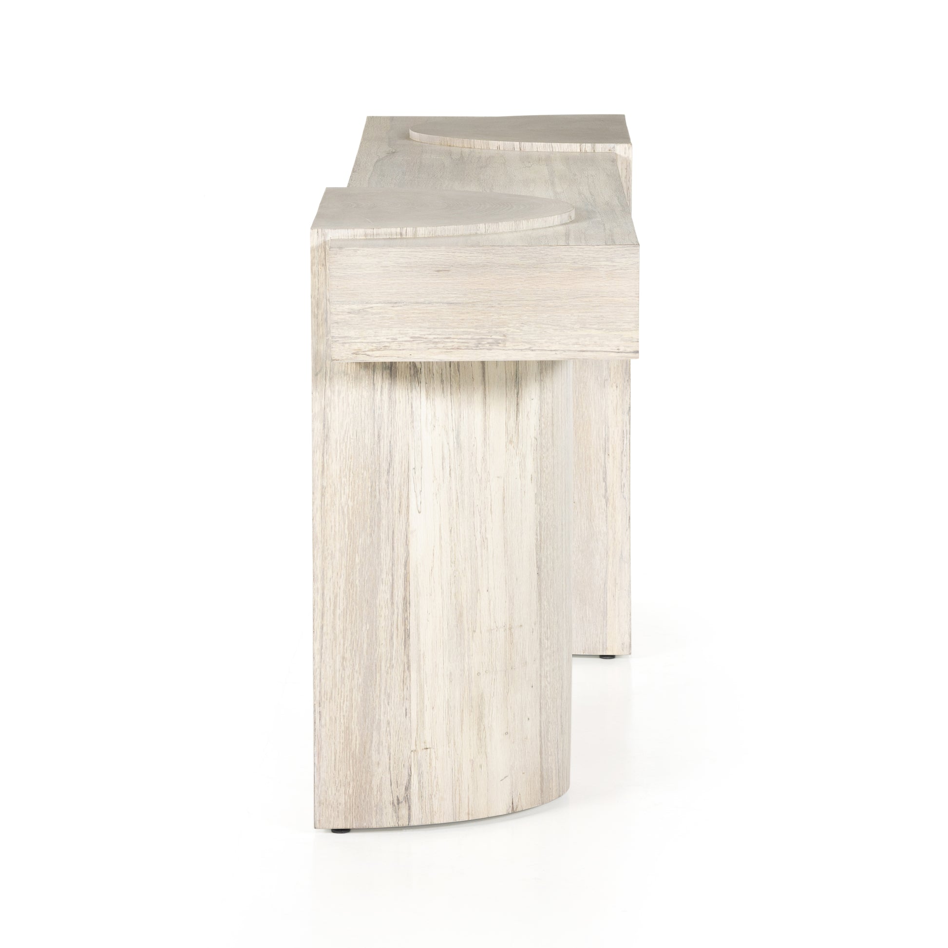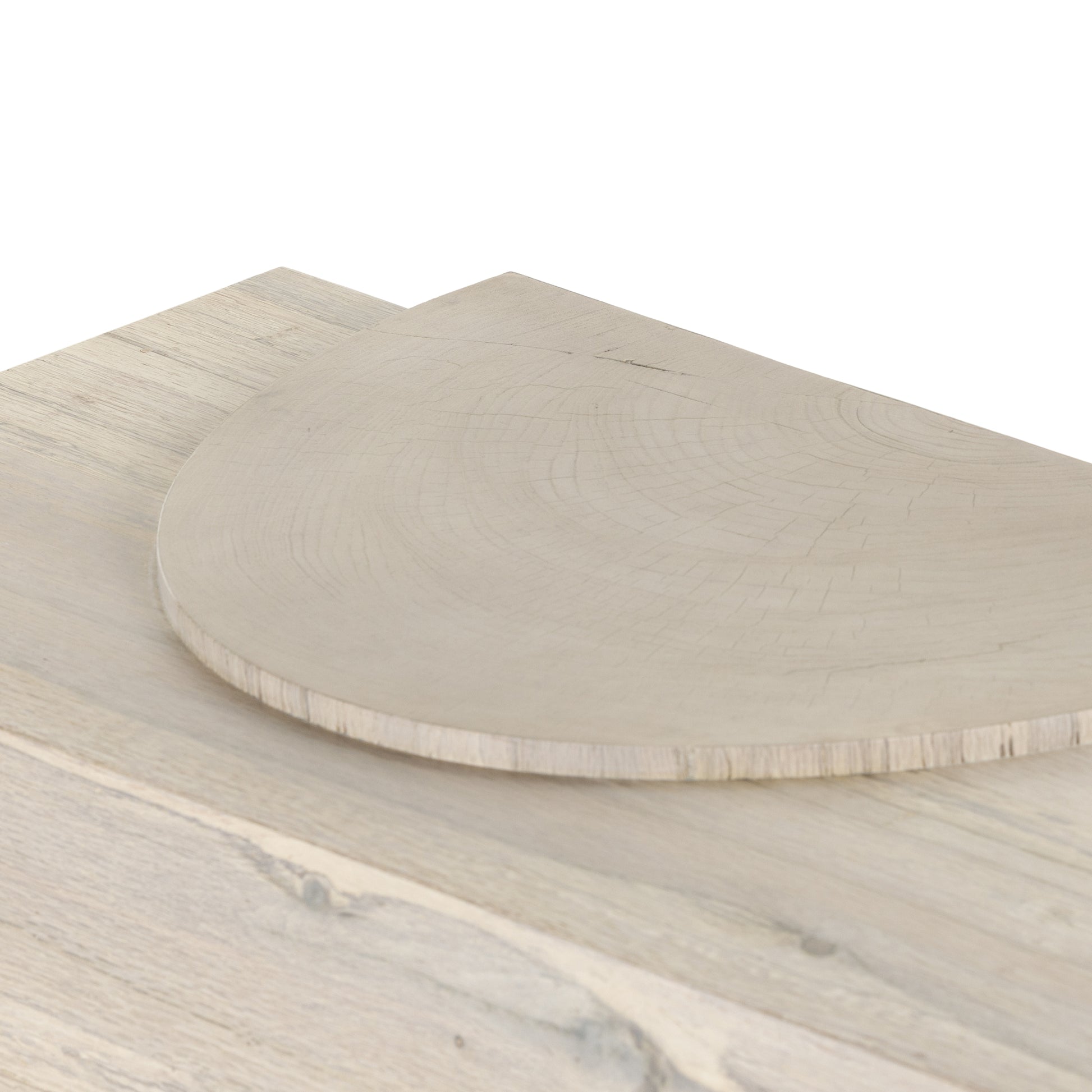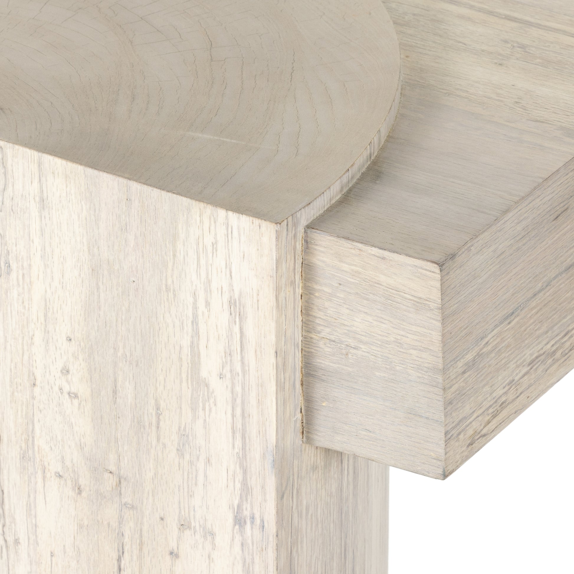 Made from thick-cut bleached oak veneer, as asymmetric base features pillar-style legs, with a plank-style top. The result: a show-stopping silhouette.