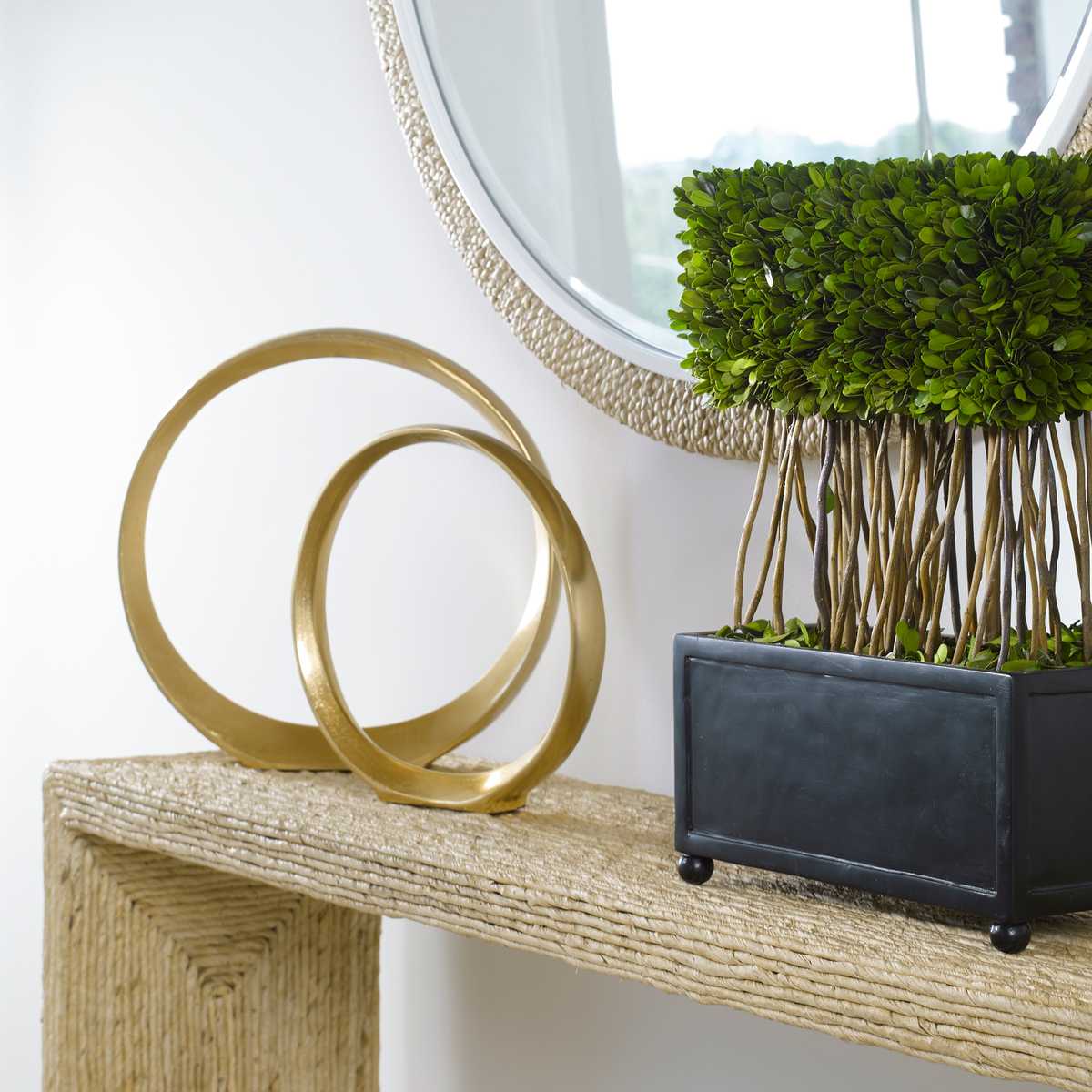 Aluminum accessories showcase a contemporary look with streamlined curves finished in a clean gold. Sizes: S-12x11x2, L-14x14x2