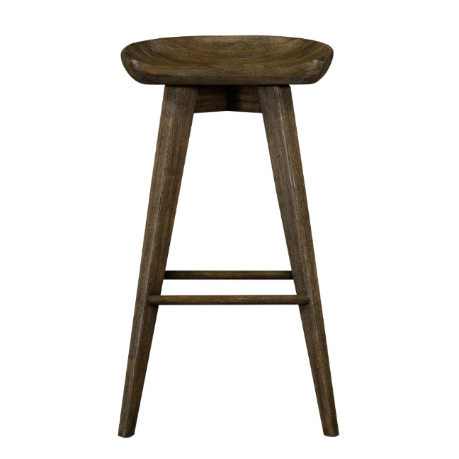 A fresh spin on bar seating. Parawood is finished in a deep charcoal for a clean, sleek look. Swivel seat and four kickplates for ease. 25.75" H.