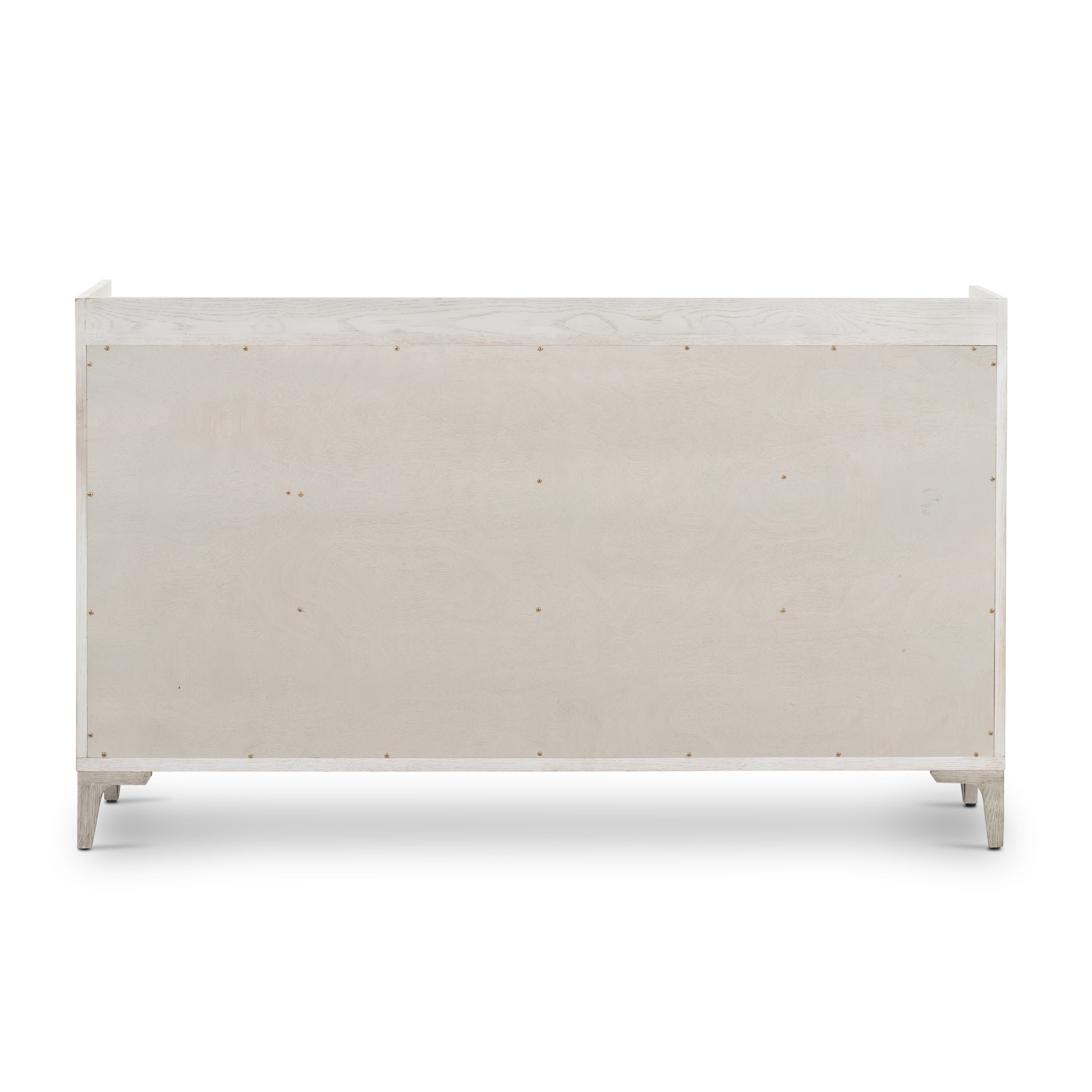 Vintage white oak is finished with a dry hand for a light look, while a top of white Italian marble offers a sophisticated material mix. Six spacious drawers bring generous storage space to the bedroom.