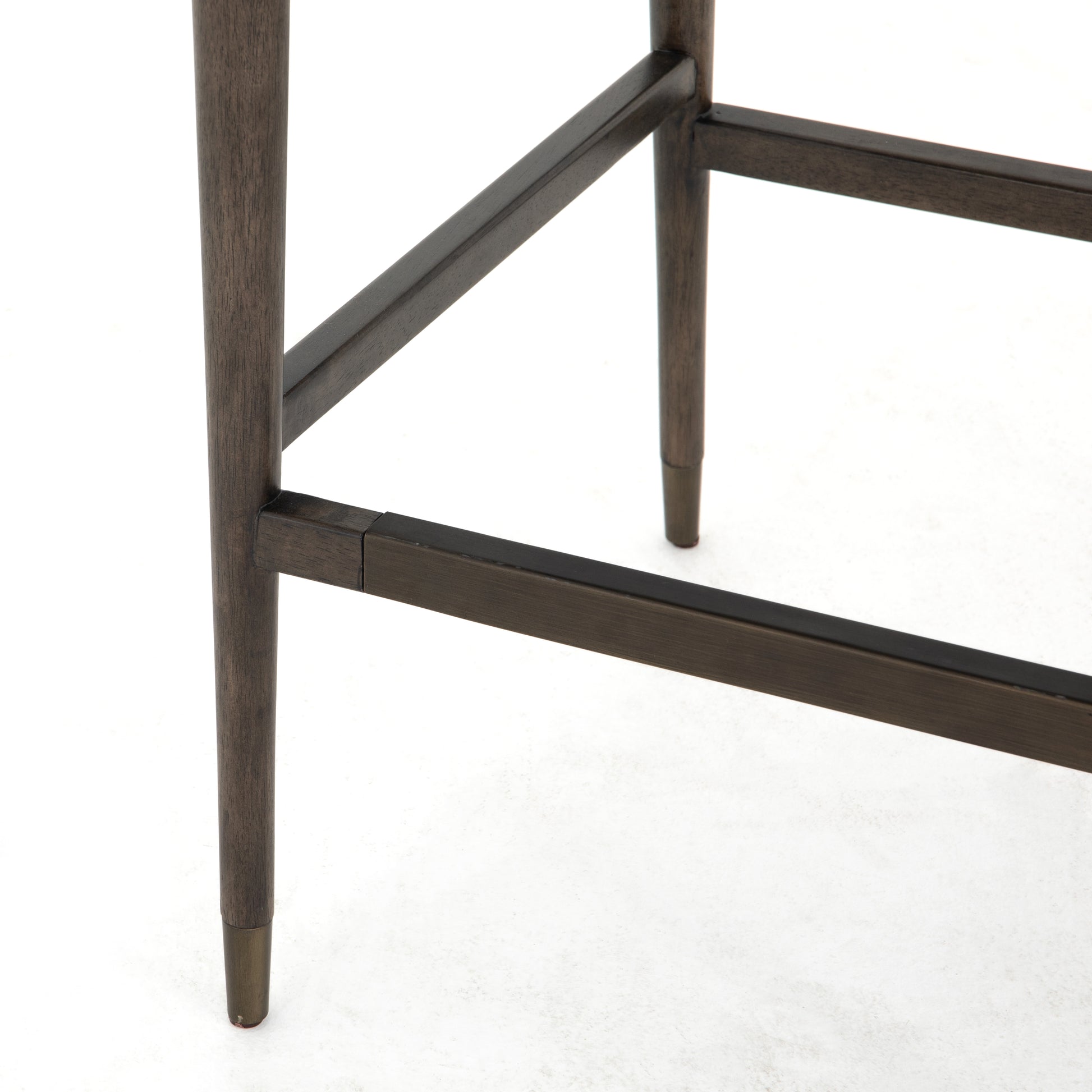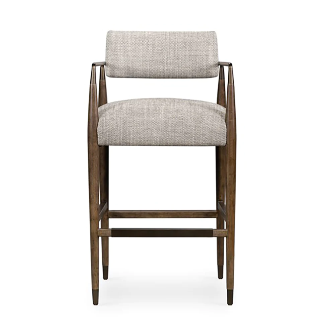 Slim, sculptural style. Angular framing features a mix of bronze-finished metal and solid rubberwood, for a forward-thinking feel. Textural linen-blend seating adopts an invitingly neutral grey hue to move freely between spaces and styles. Performance fabrics are specially created to withstand spills, stains, high traffic and wear, ensuring long-term comfort and unmatched durability.